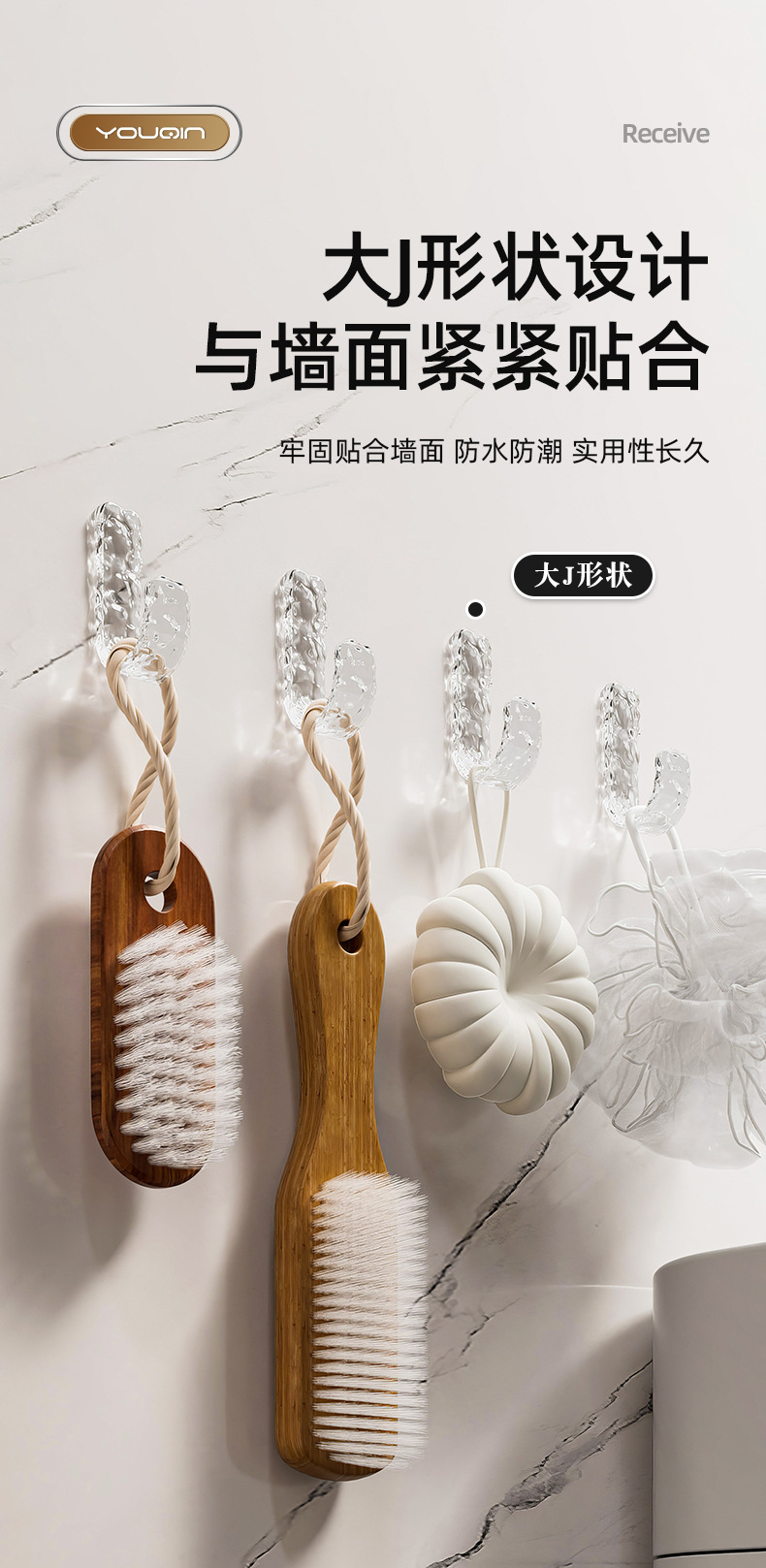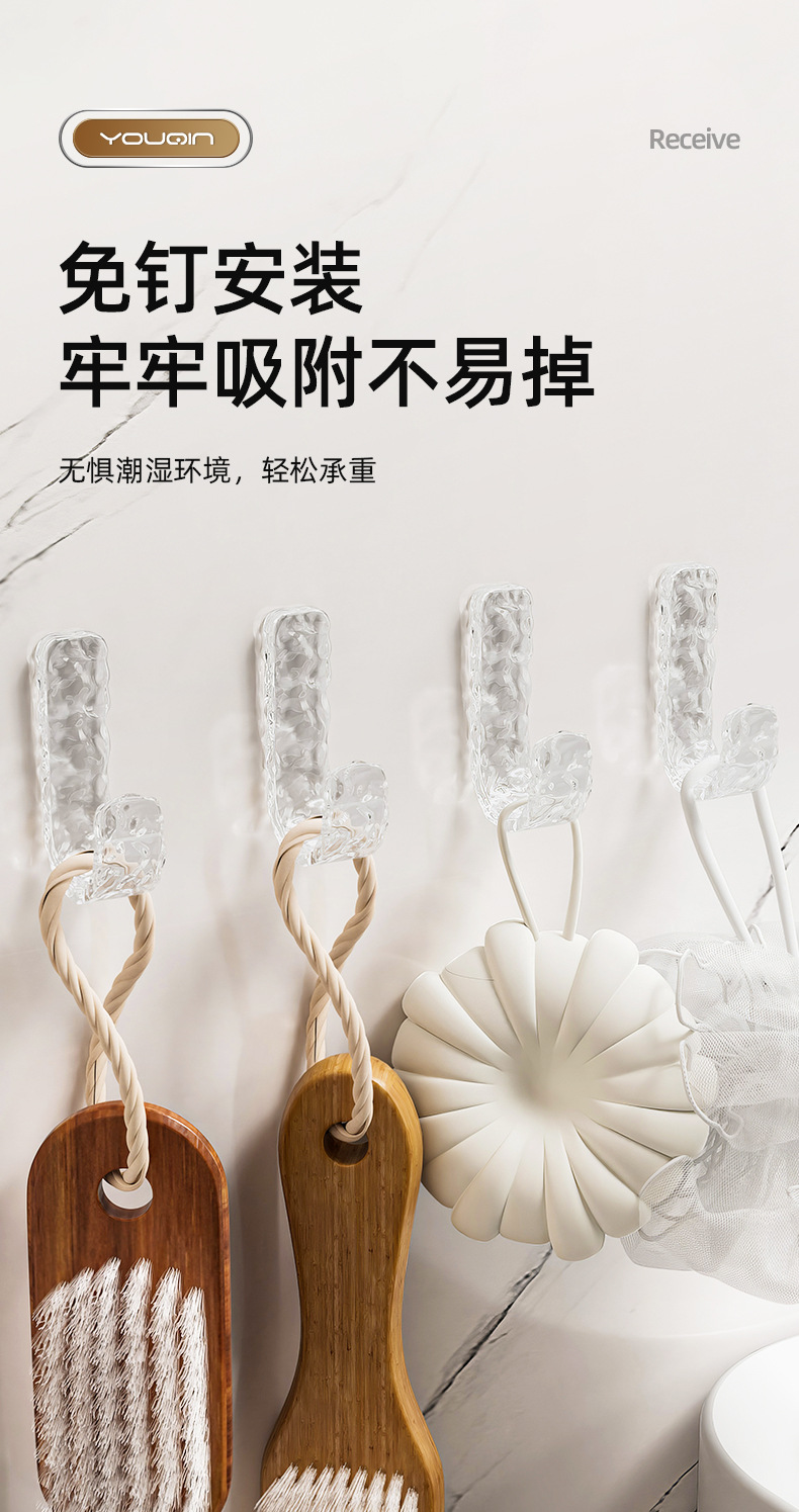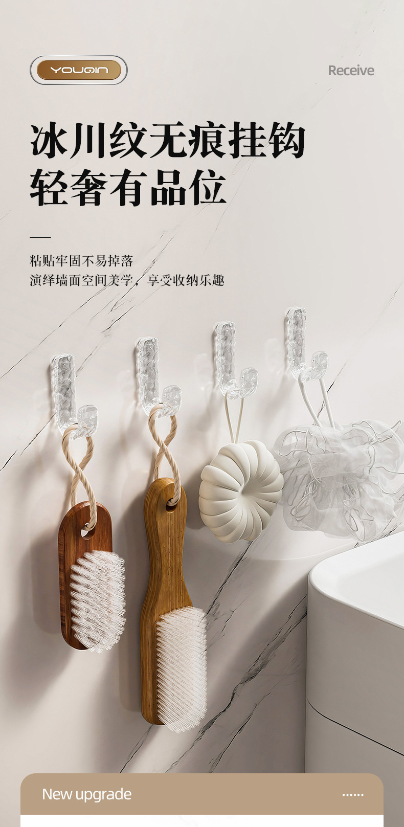 Glacier pattern hook adhesive strong load bearing punch free bathroom Bathroom Kitchen seamless paste wall sticky hook