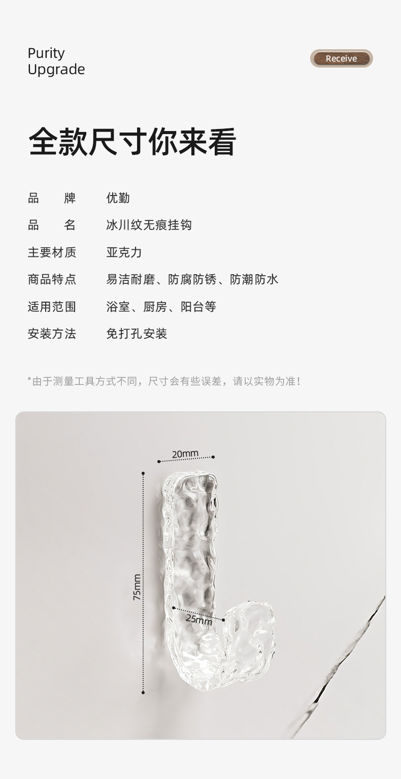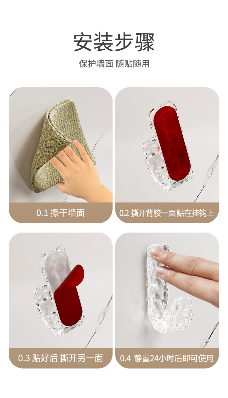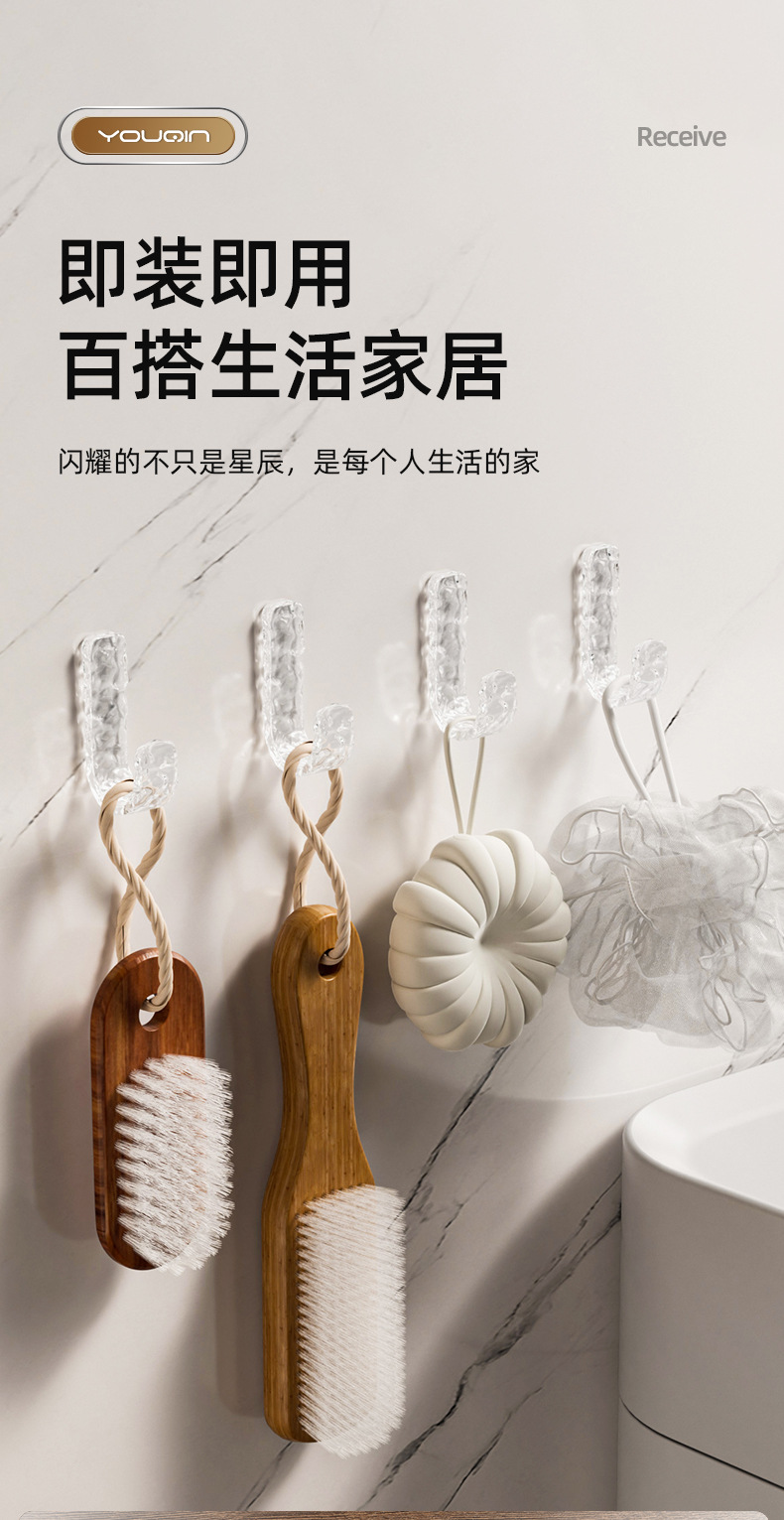Glacier pattern hook adhesive strong load bearing punch free bathroom Bathroom Kitchen seamless paste wall sticky hook