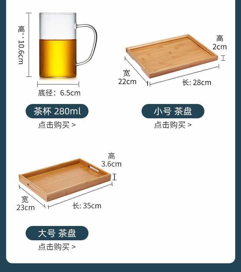 - Transparent small pot + 280ml Cup 4 + large tea tray