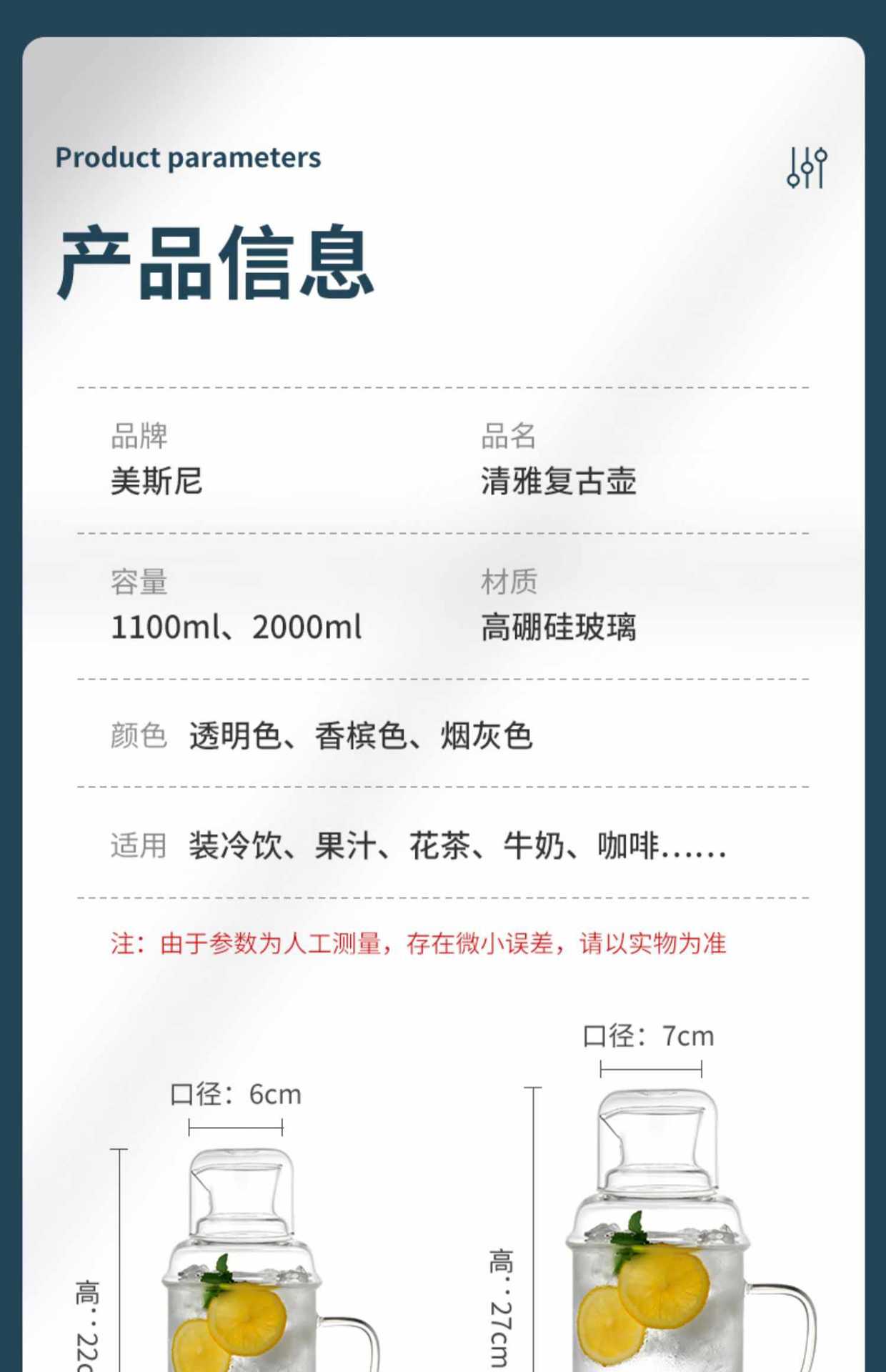 Glass cold water bottle high temperature resistant cold white open water Cup suit large capacity water bottle teapot cold water bottle