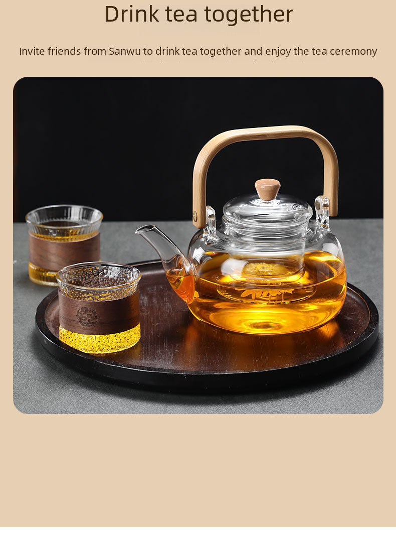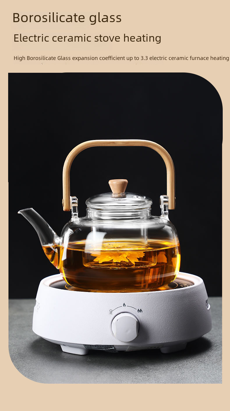 Glass teapot electric pottery stove teapot bamboo handle beam pot thickened heat resistant open flame heating kettle health pot