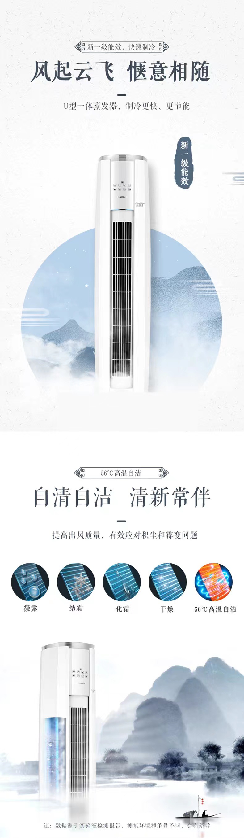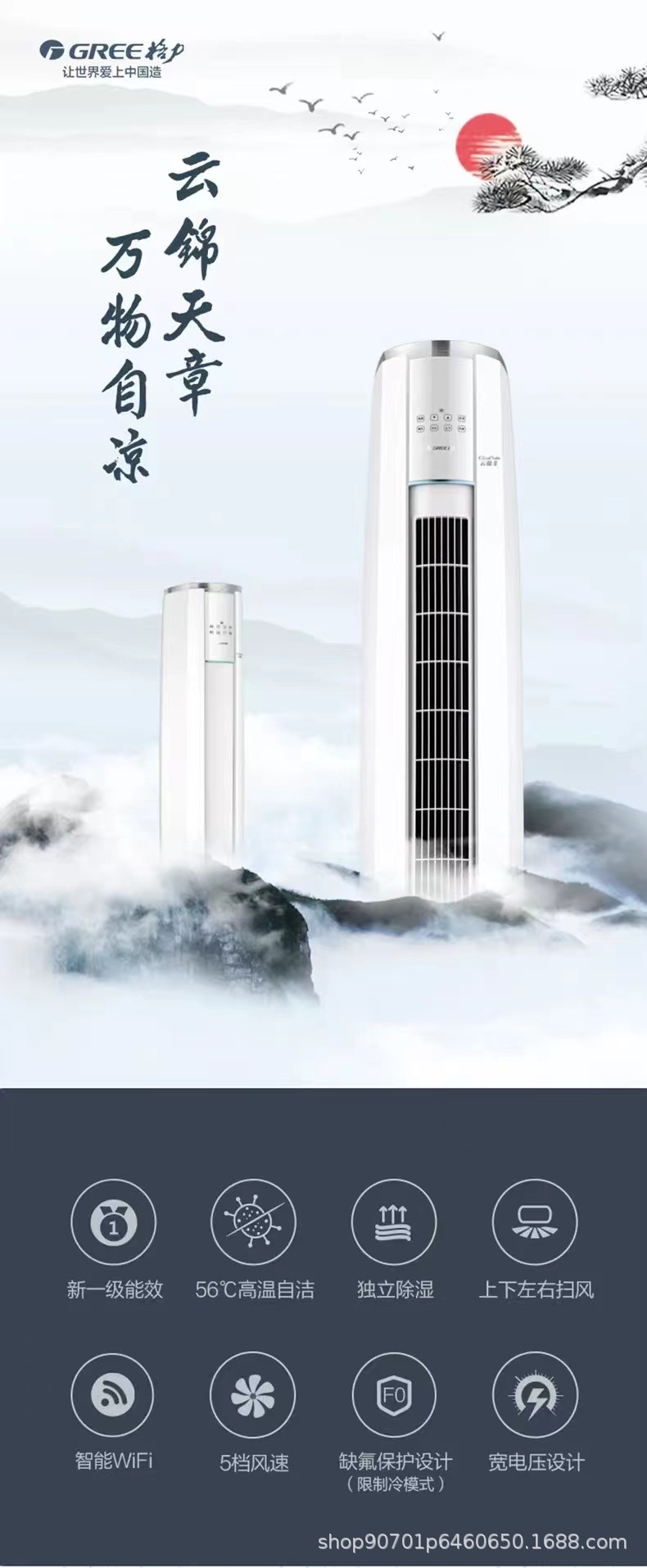 Gree air conditioner yunjin ll vertical large 2 HP 3 hp new first class variable frequency cooling and heating self cleaning WIFI control self cleaning