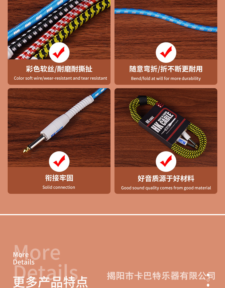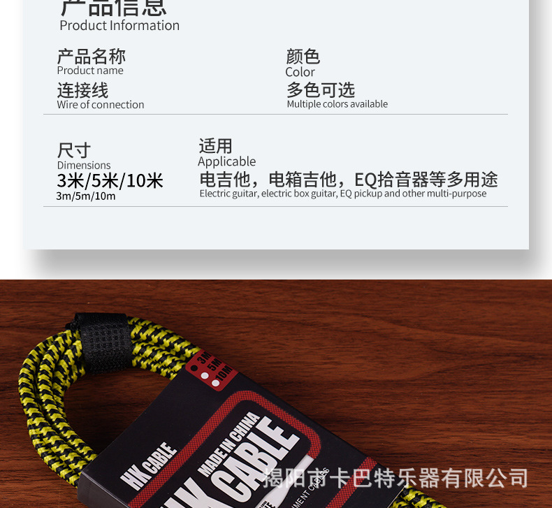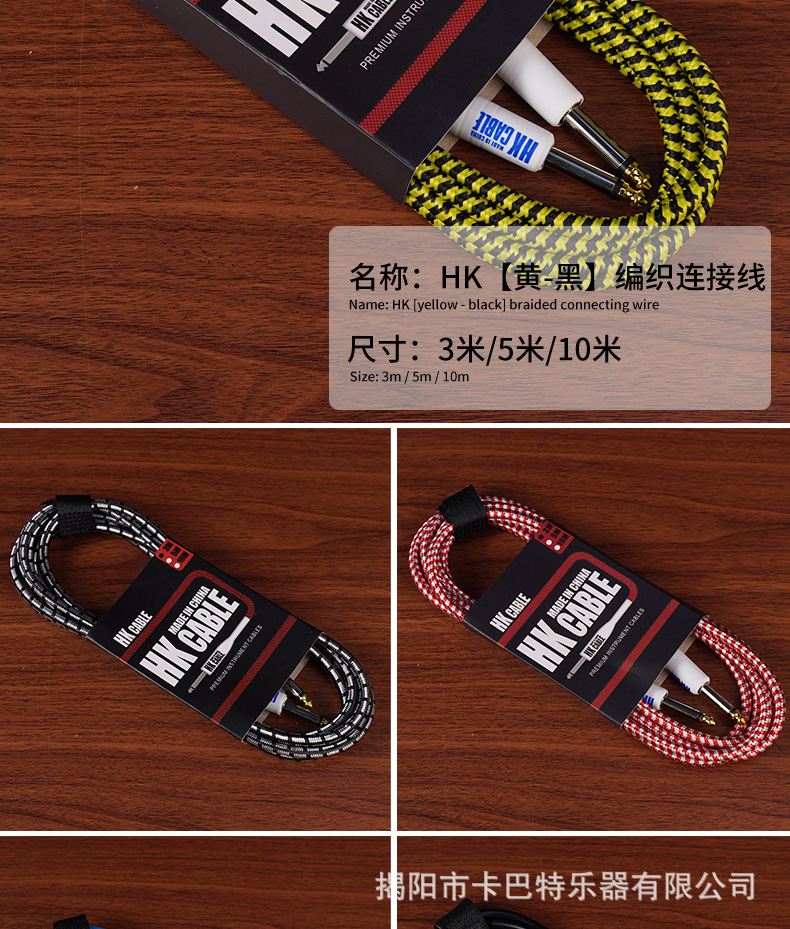 Guitar connection line 3 meters 5 meters 10 meters folk electric box guitar bass electric guitar noise reduction woven audio line musical instrument