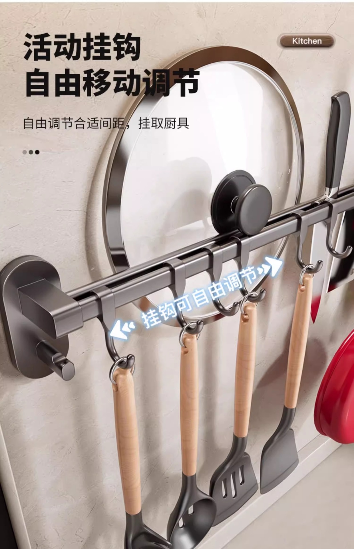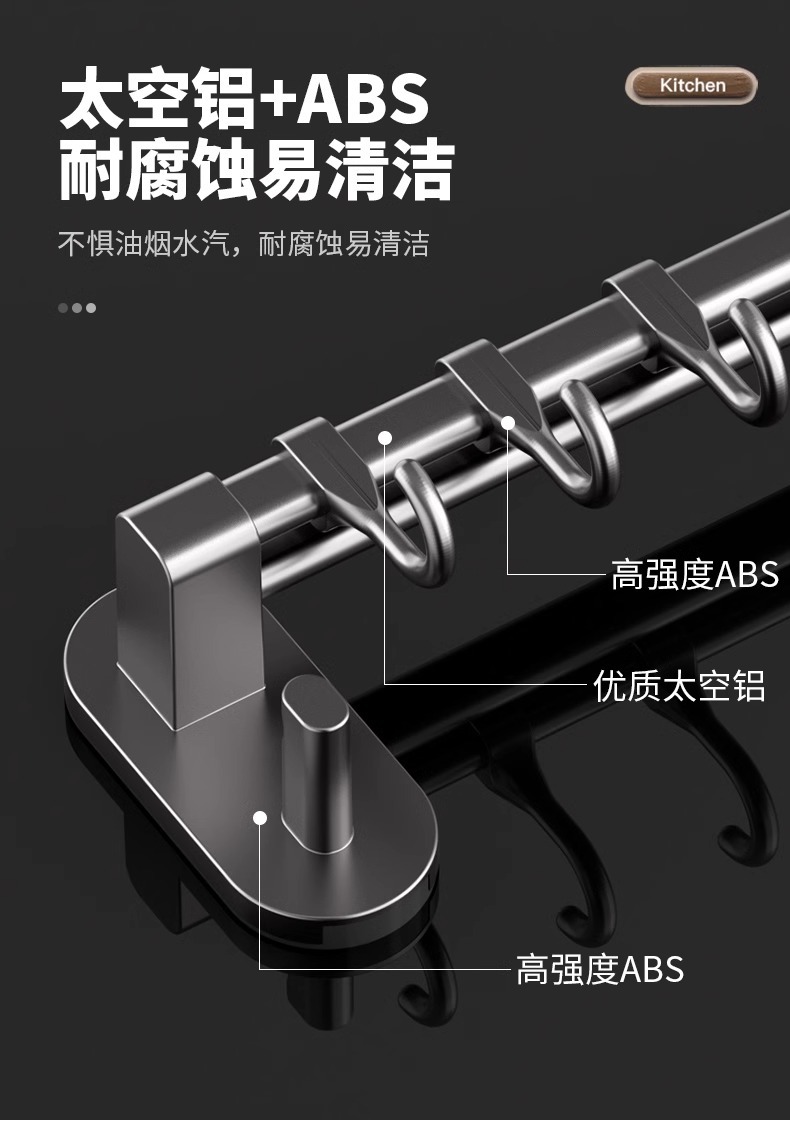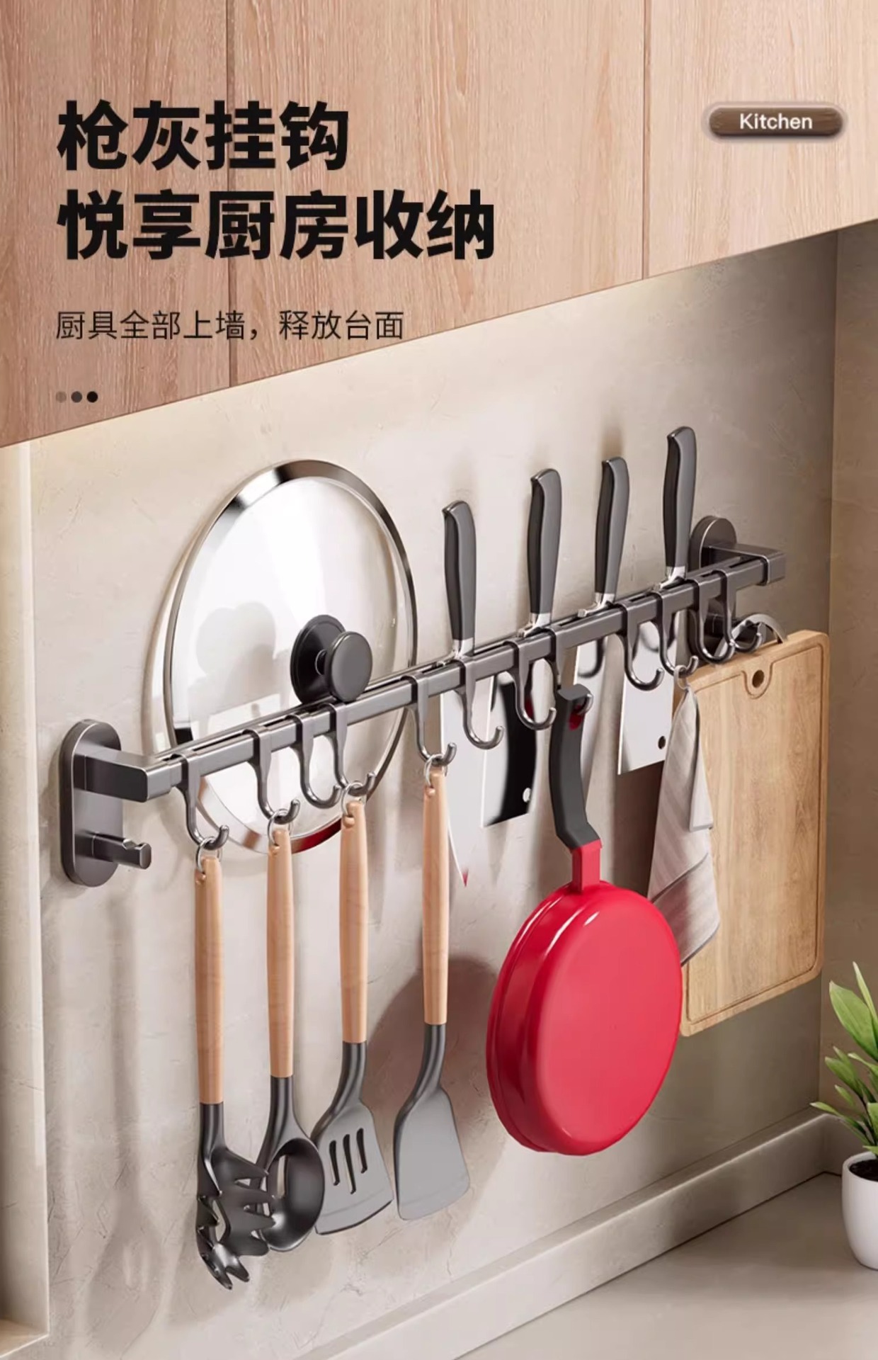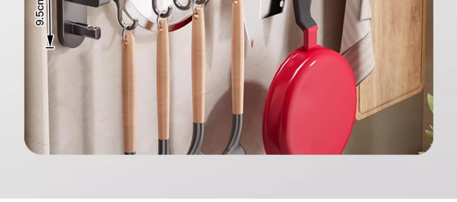 Gun gray kitchen hook rack punch free hanging rod wall mounted storage rack multi function pot shovel spoon storage rack