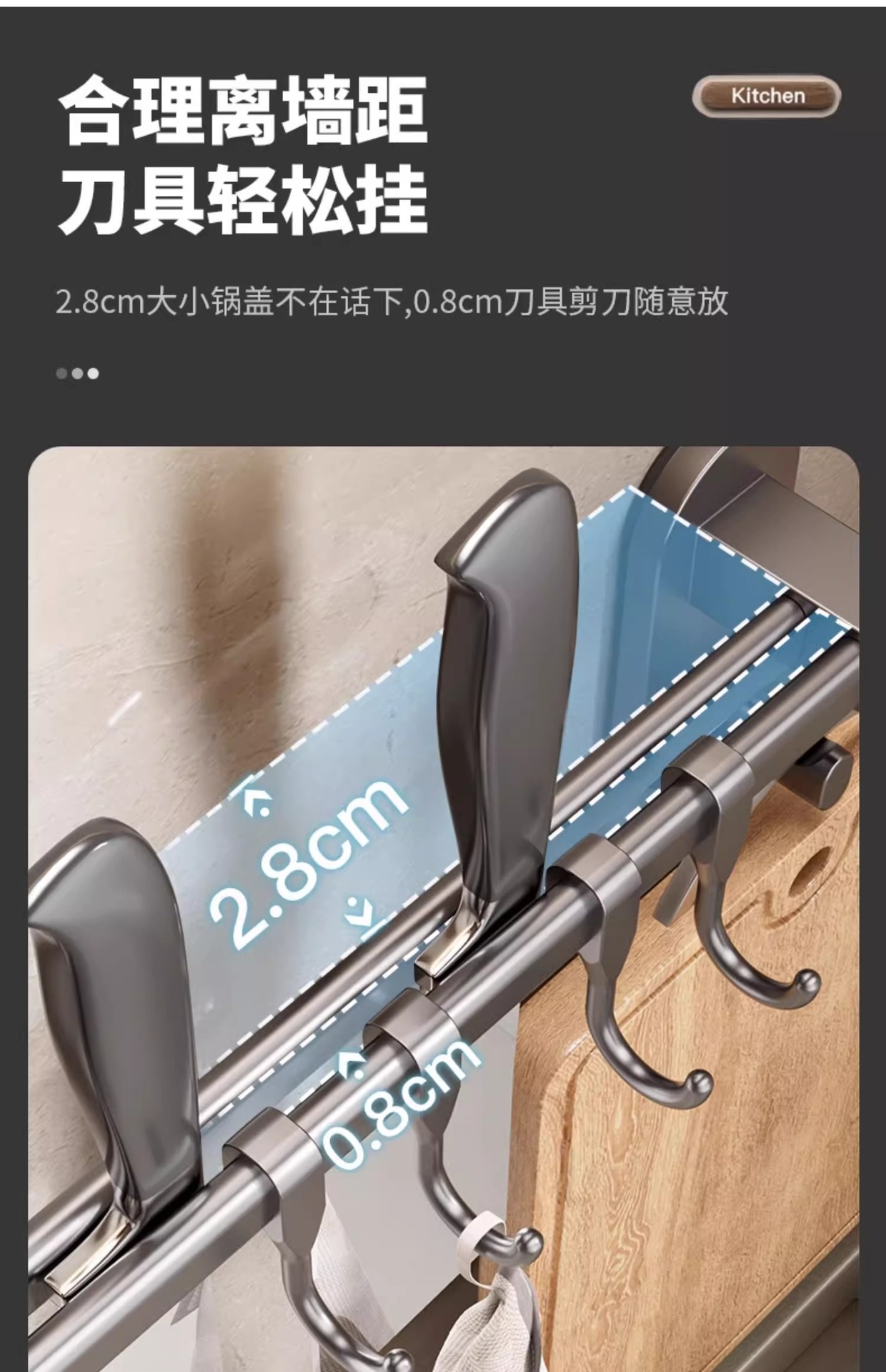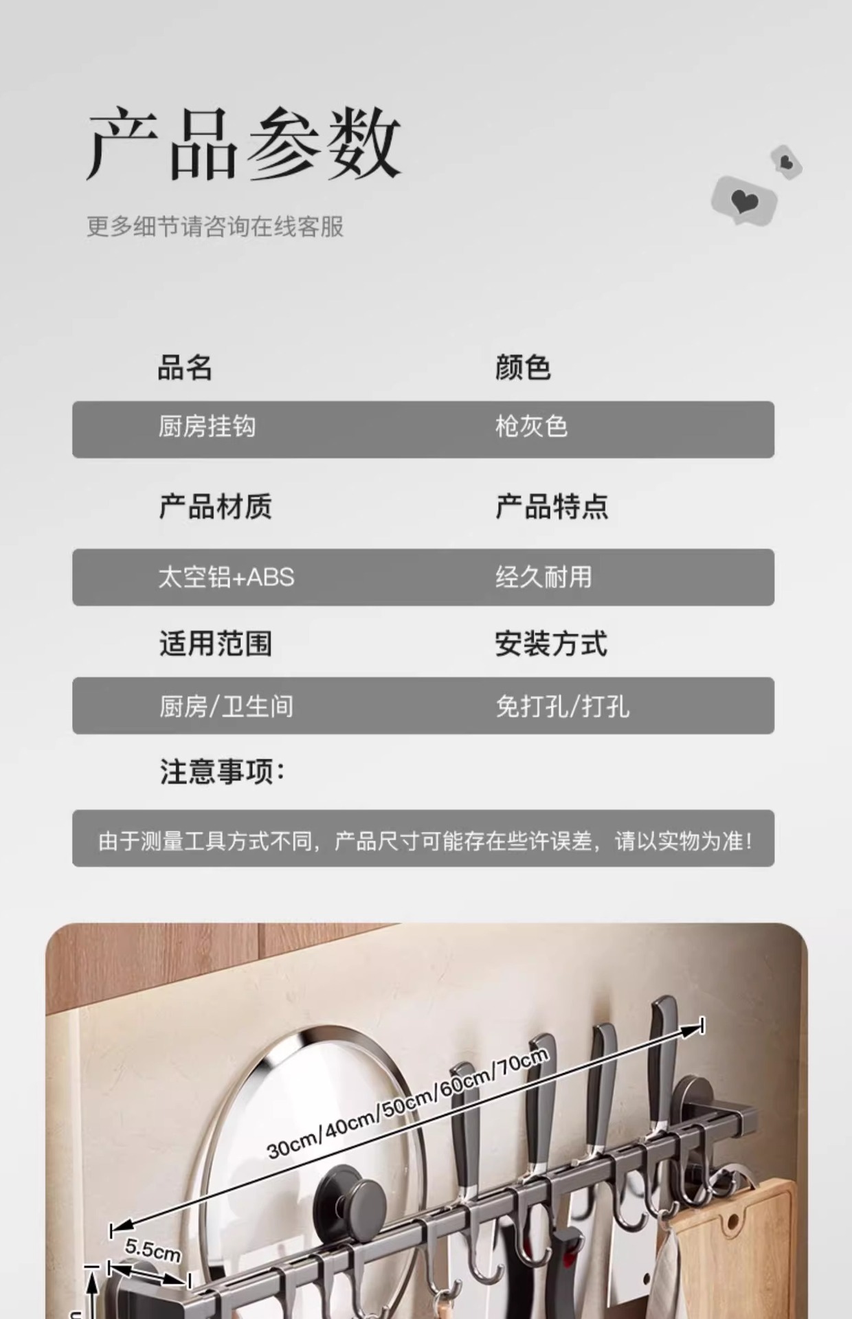 - Gun gray double rod_40cm8 hook [pot cover/knife can be placed]]