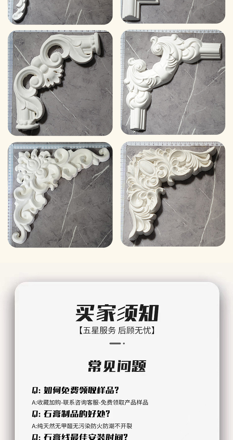 Gypsum Line Corner Flower Ceiling Line Border French Carved TV Background Wall Modeling Living Room French Gypsum Corner