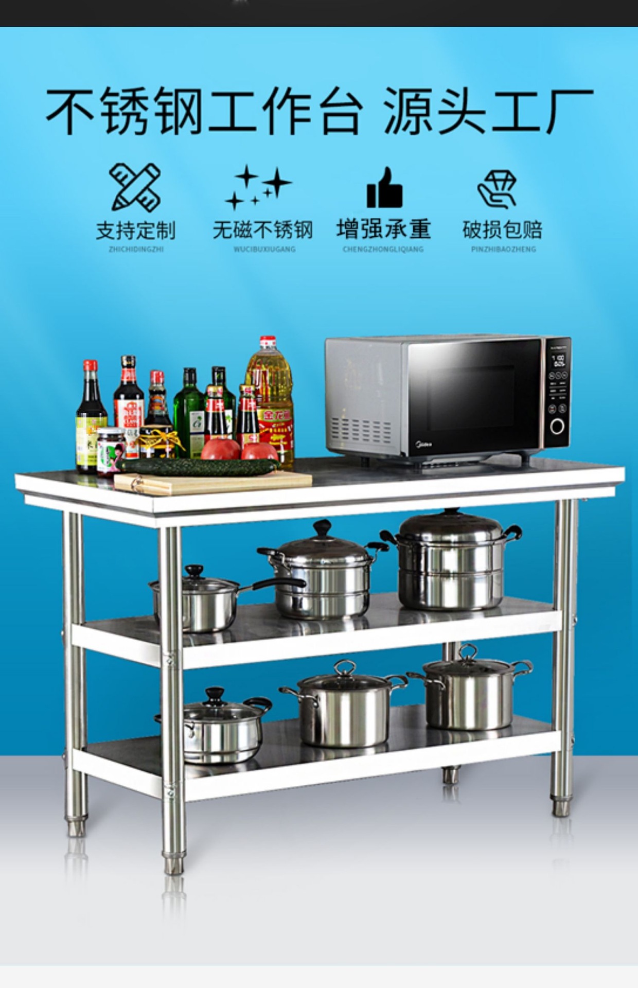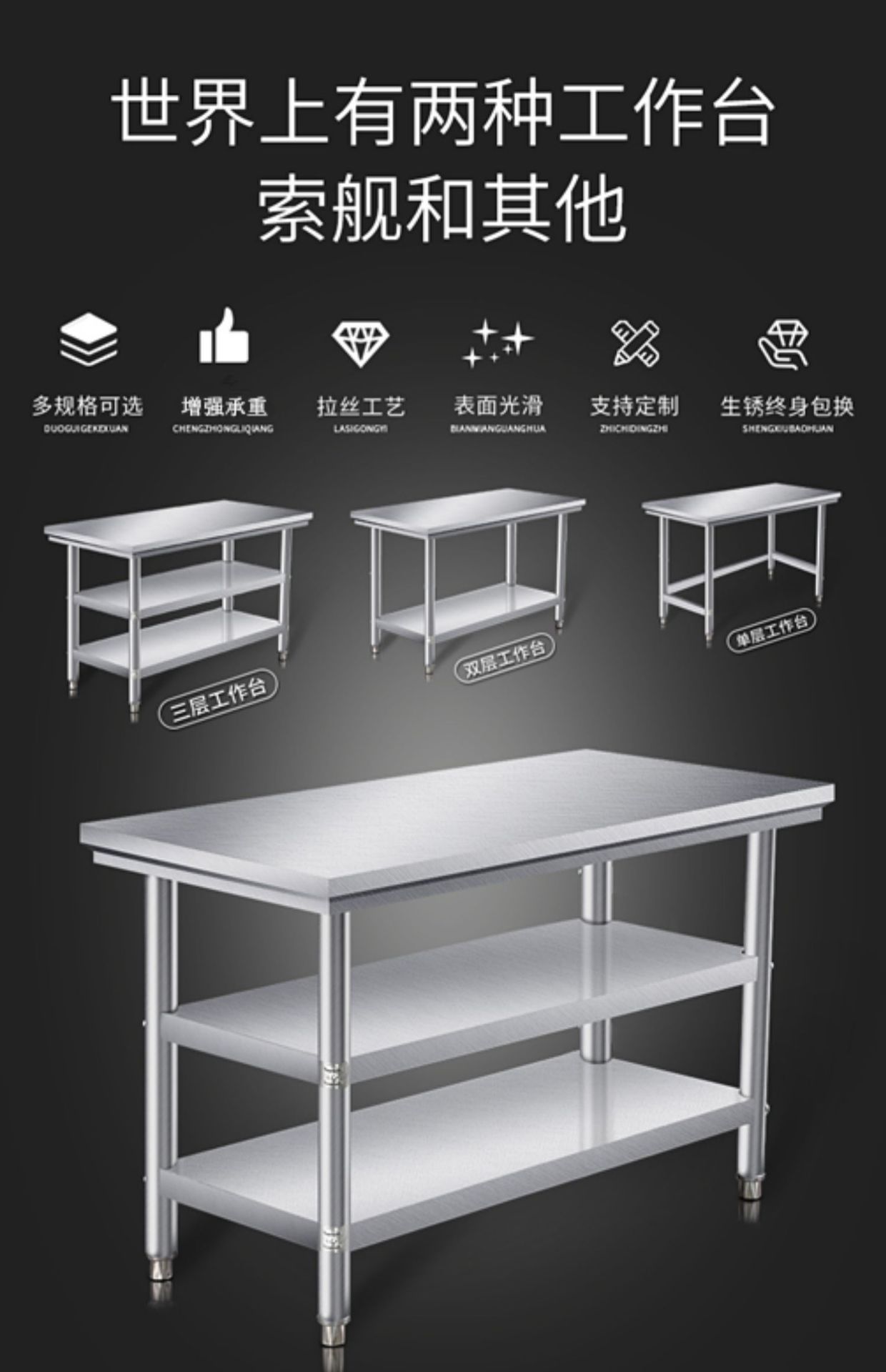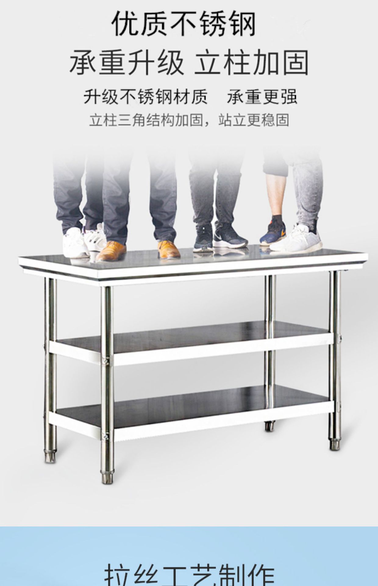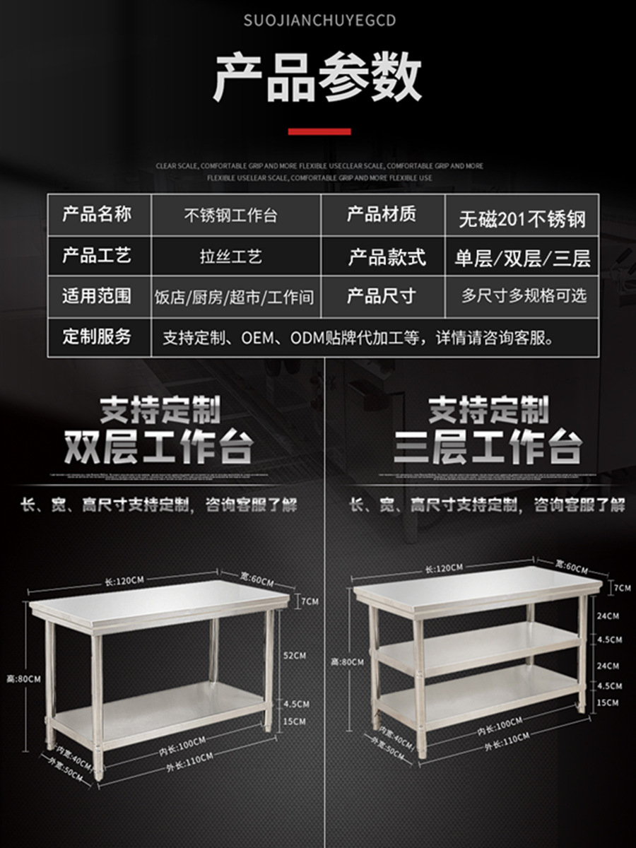 H Stainless Steel Workbench Kitchen Household Commercial Table Rectangular Operation Table Cutting Table Table Top Case