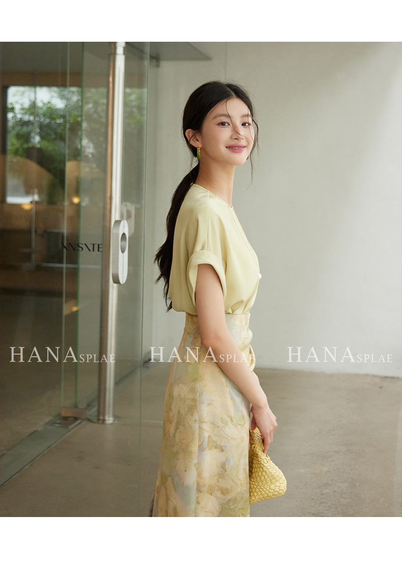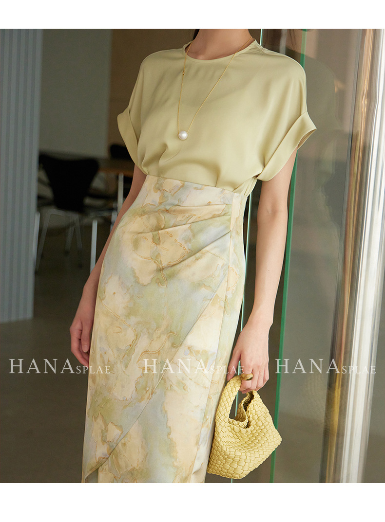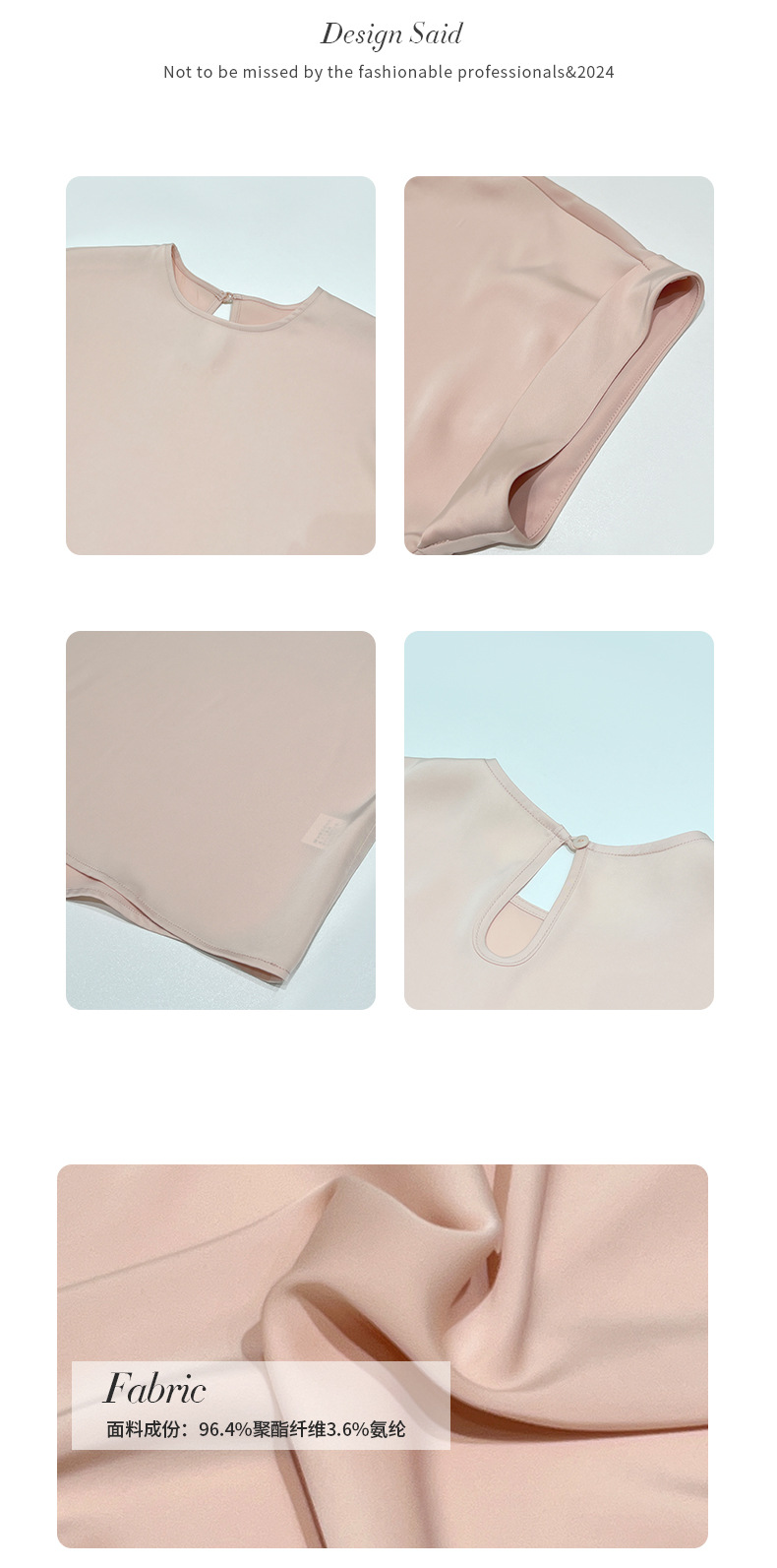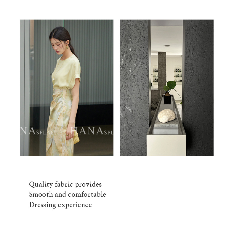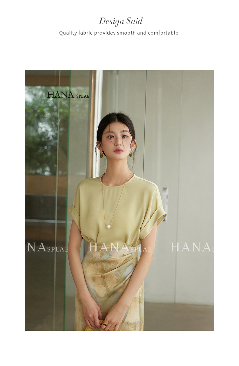 HANNA with the crew neck shirt women s short sleeve summer top 2024 new satin silk t shirt 16728