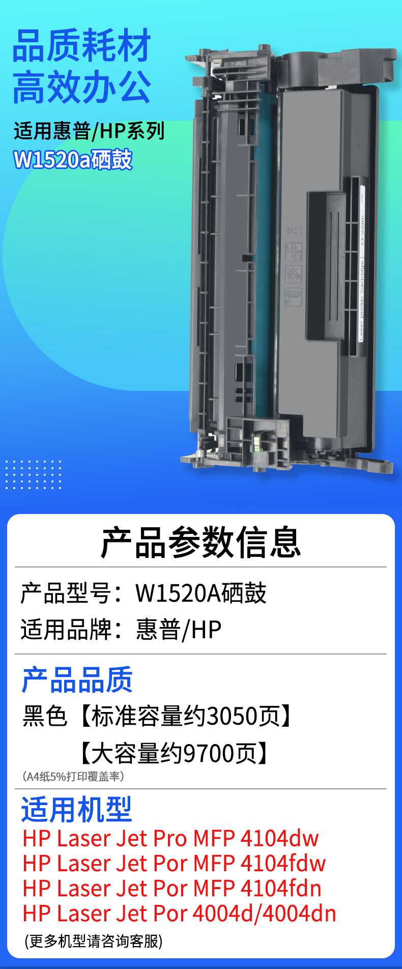 HP 4004dw toner cartridge w1520a 4004dn 4104fdn 4104dw 4104fdw toner cartridge