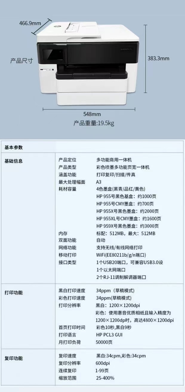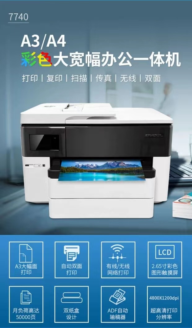 HP 7720 7730 7740 Color Printer A3 A4 Automatic Double sided Printing Copying and Scanning