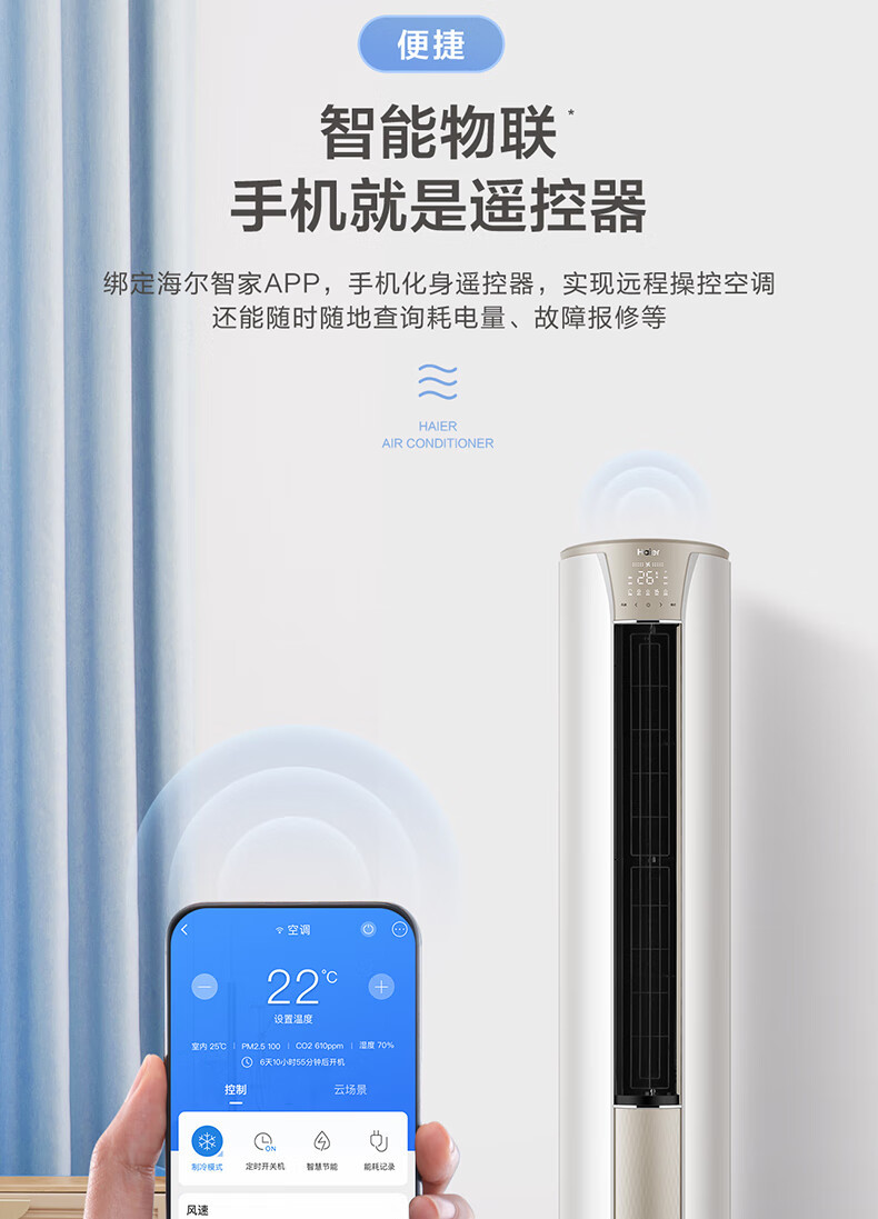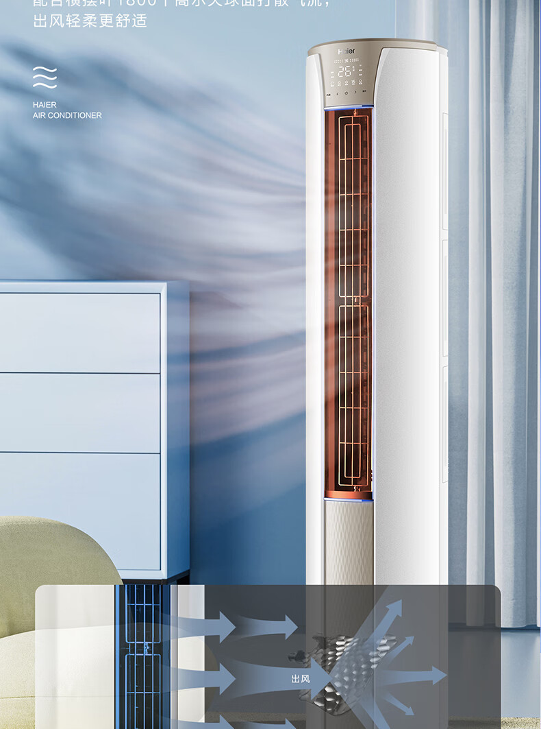 Haier Frequency Conversion 2P 3 Self cleaning Living Room Cylindrical Air Conditioning Vertical Cabinet Machine New Energy Efficiency WiFi
