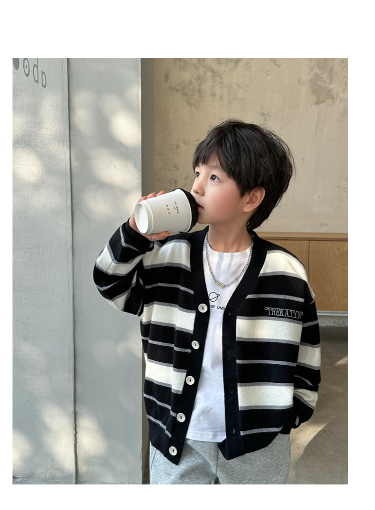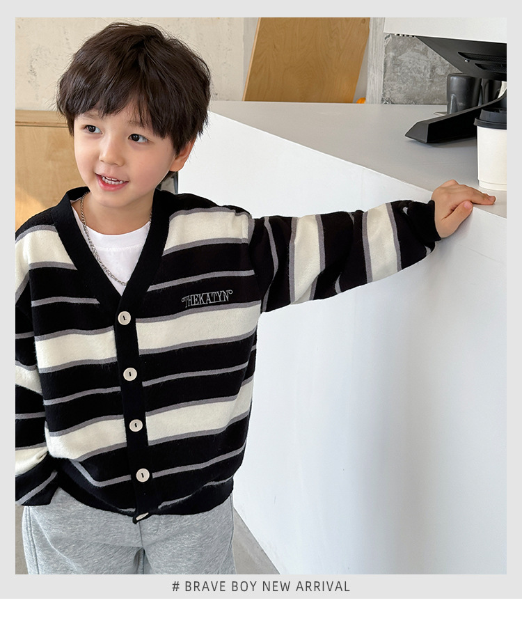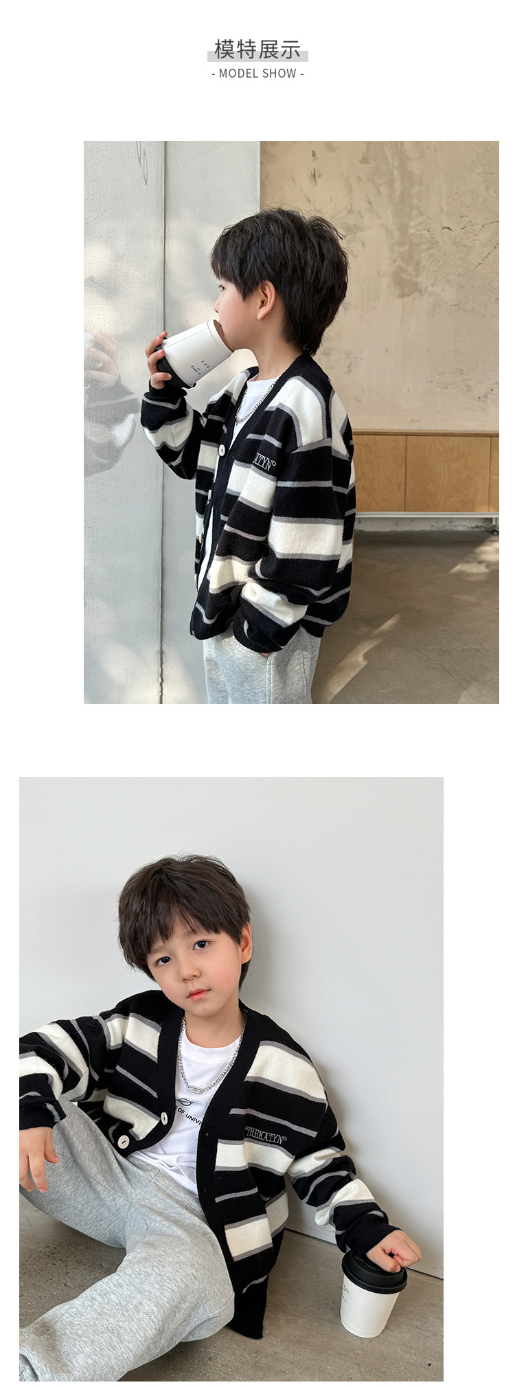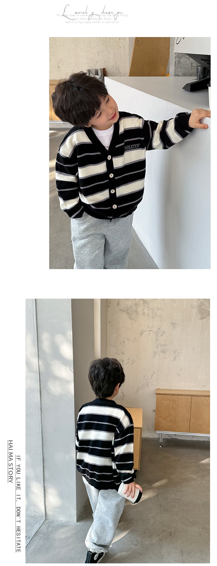 Haimaojia 2024 boys Spring and Autumn New knitted cardigan coat children s Korean style western style top children s clothing striped fashion