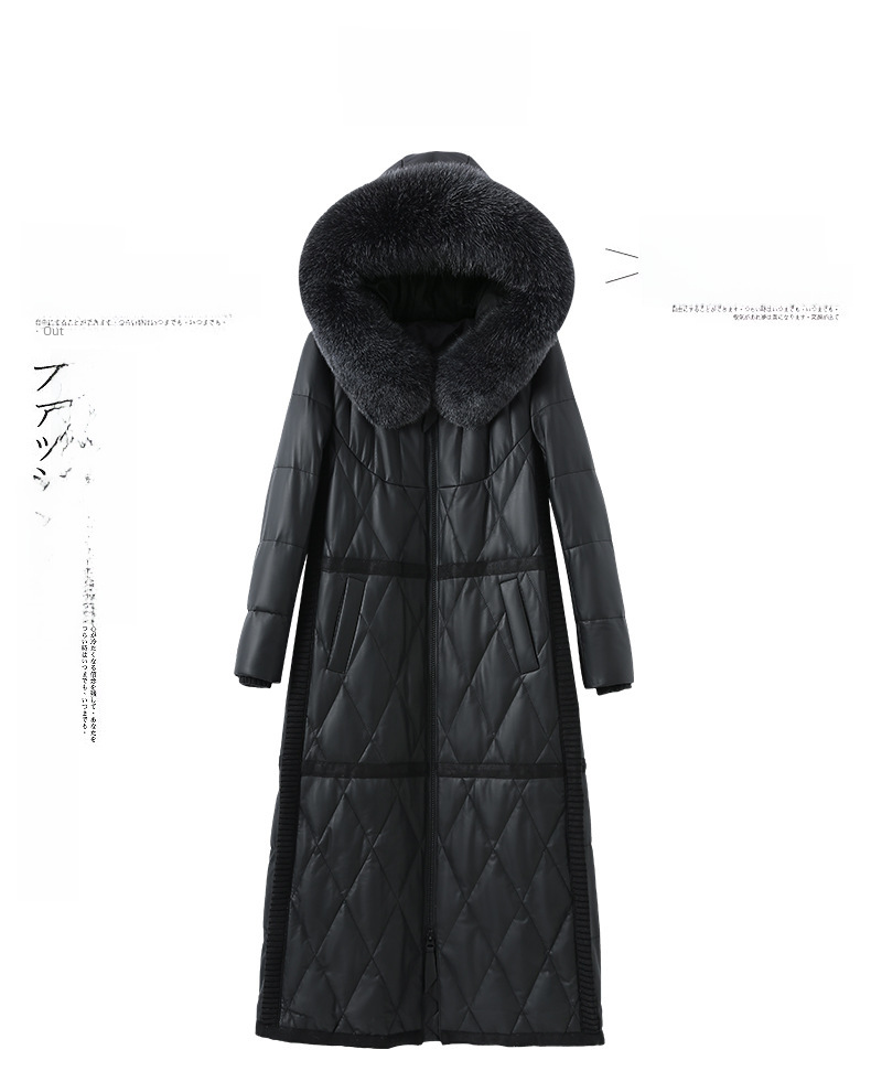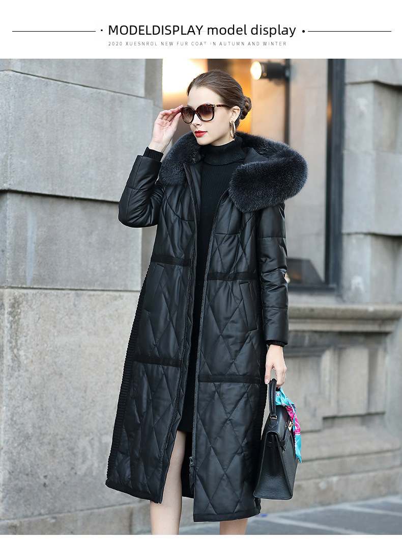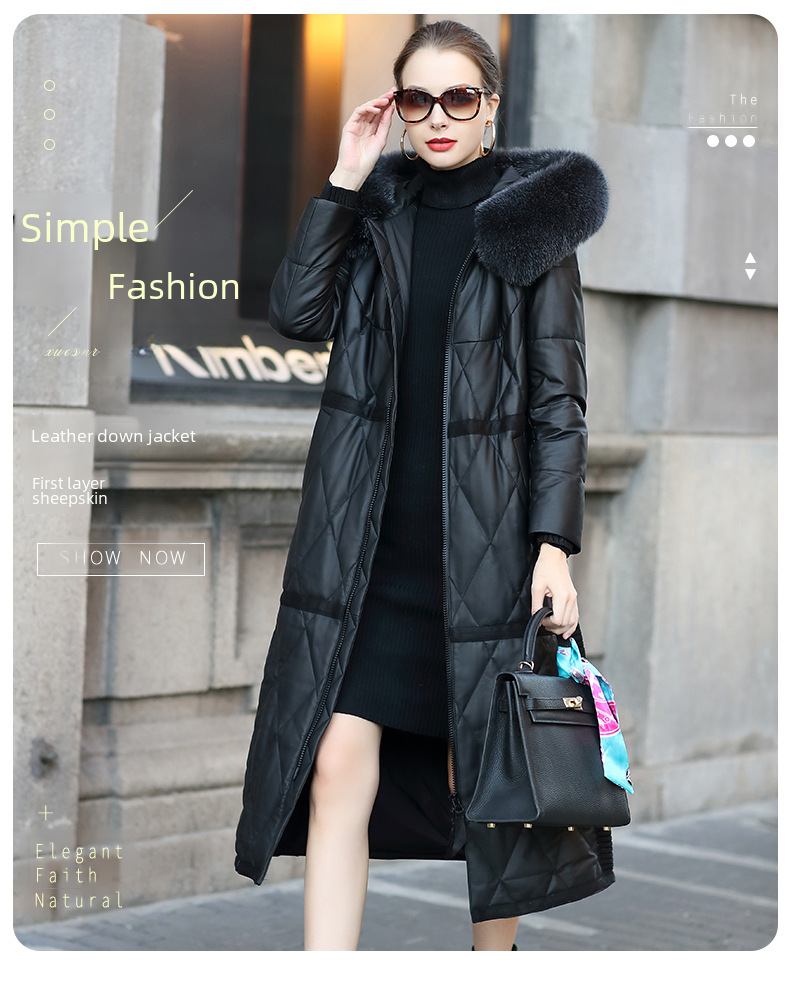 Haining 2023 Winter New Genuine Sheepskin Mid length Women s Fox Fur Hooded Genuine Leather Down Slim fit Coat
