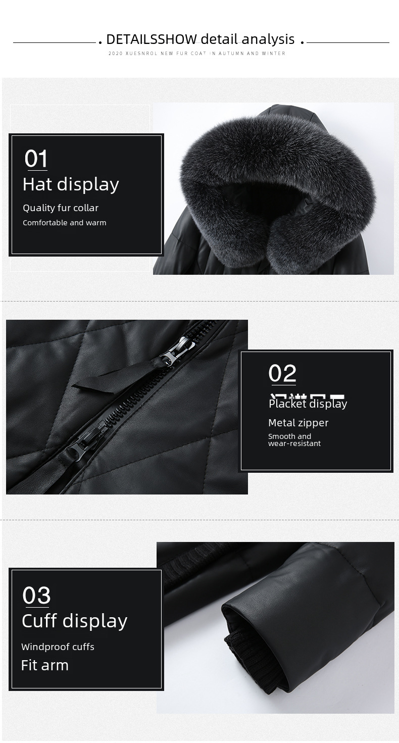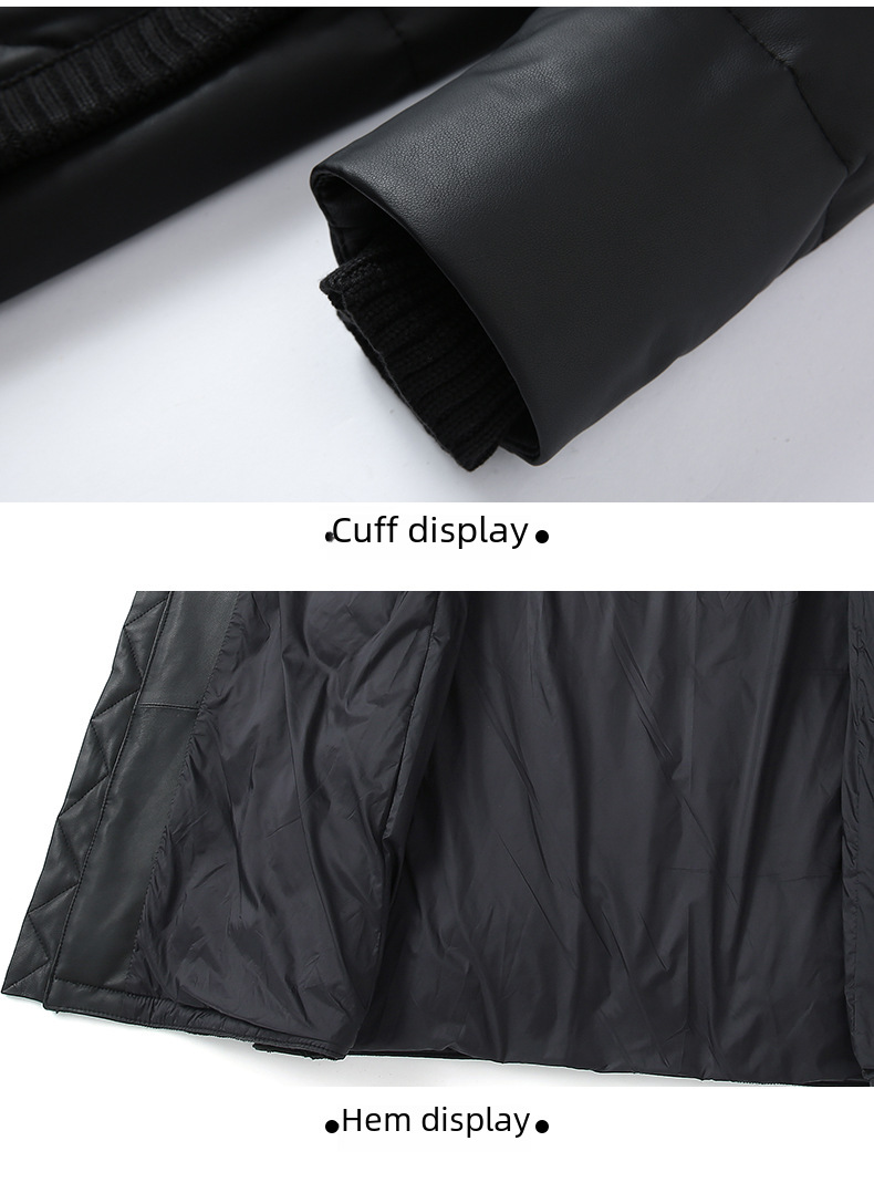 Genuine Leather Material:Crafted from high-quality genuine leather and sheepskin, this Haining 2024 winter jacket offers a luxurious feel and superior durability.