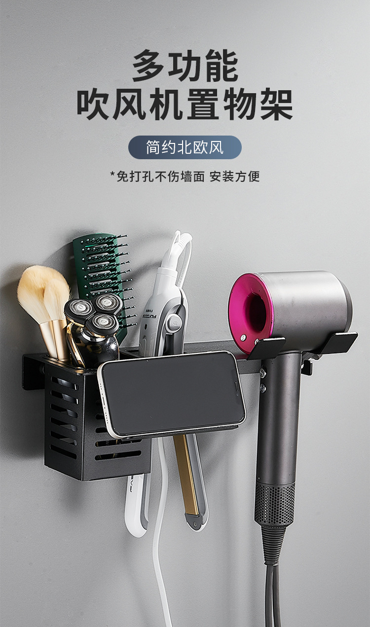 Hair dryer holder storage rack wall-mounted bathroom hair curler hair straightener storage rack hotel electric hair dryer Holder