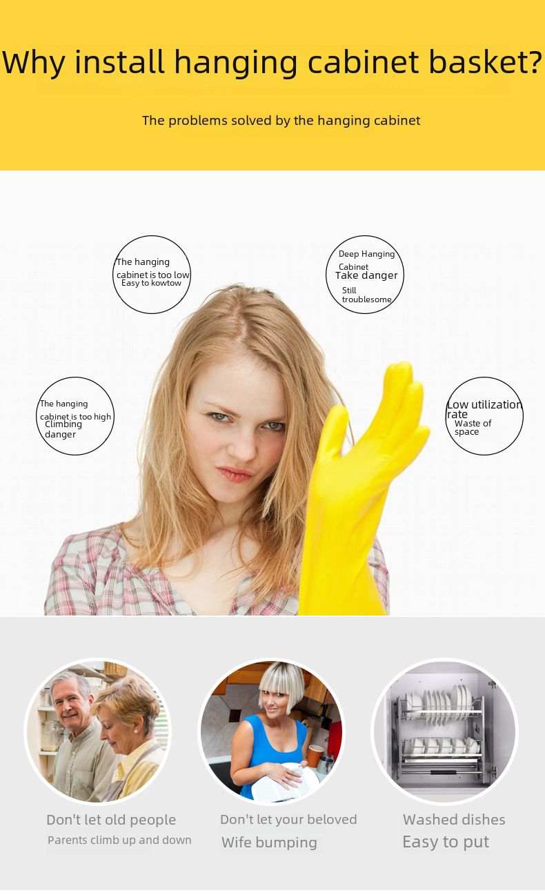 Hanging cabinet lifting basket bowl basket stainless steel kitchen cabinet dish rack damping factory wholesale