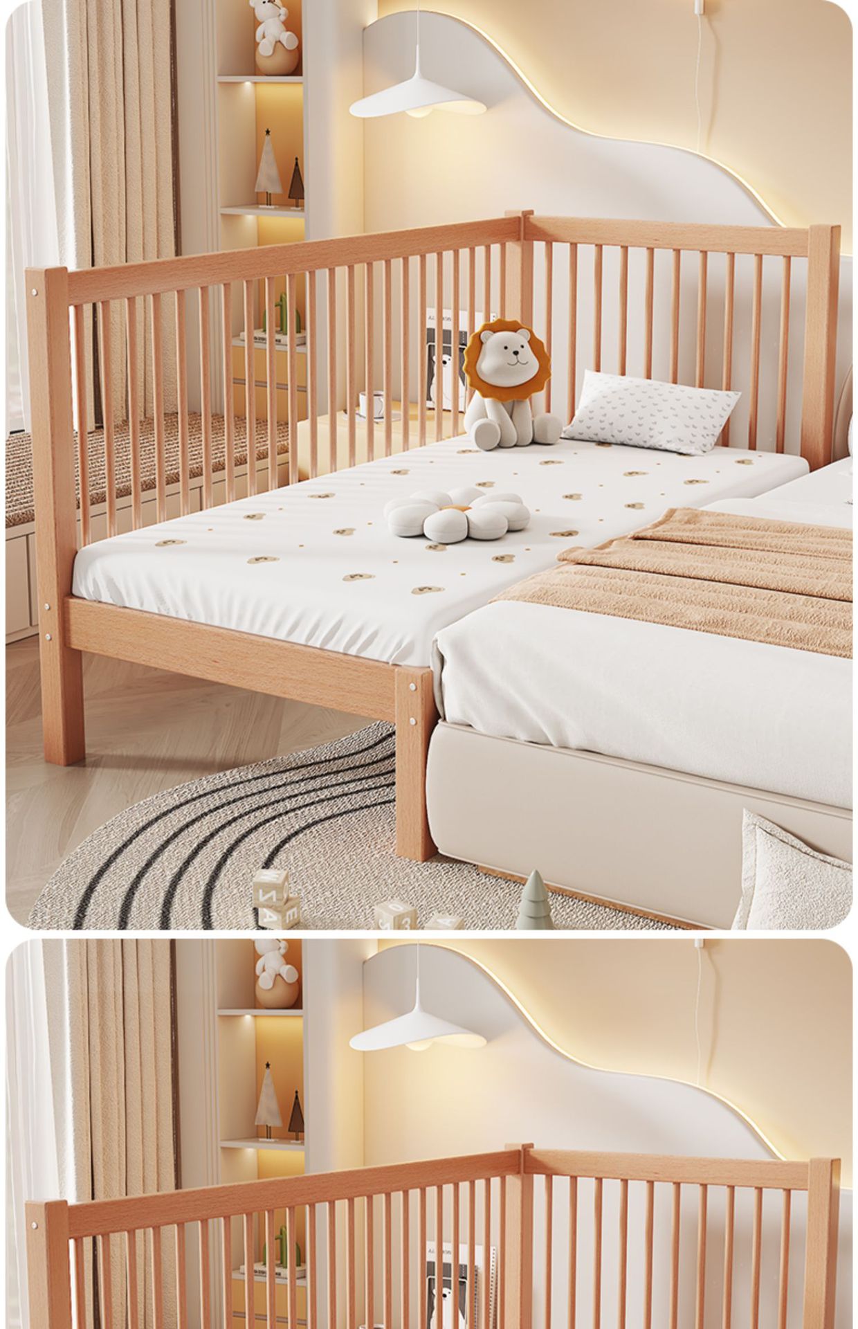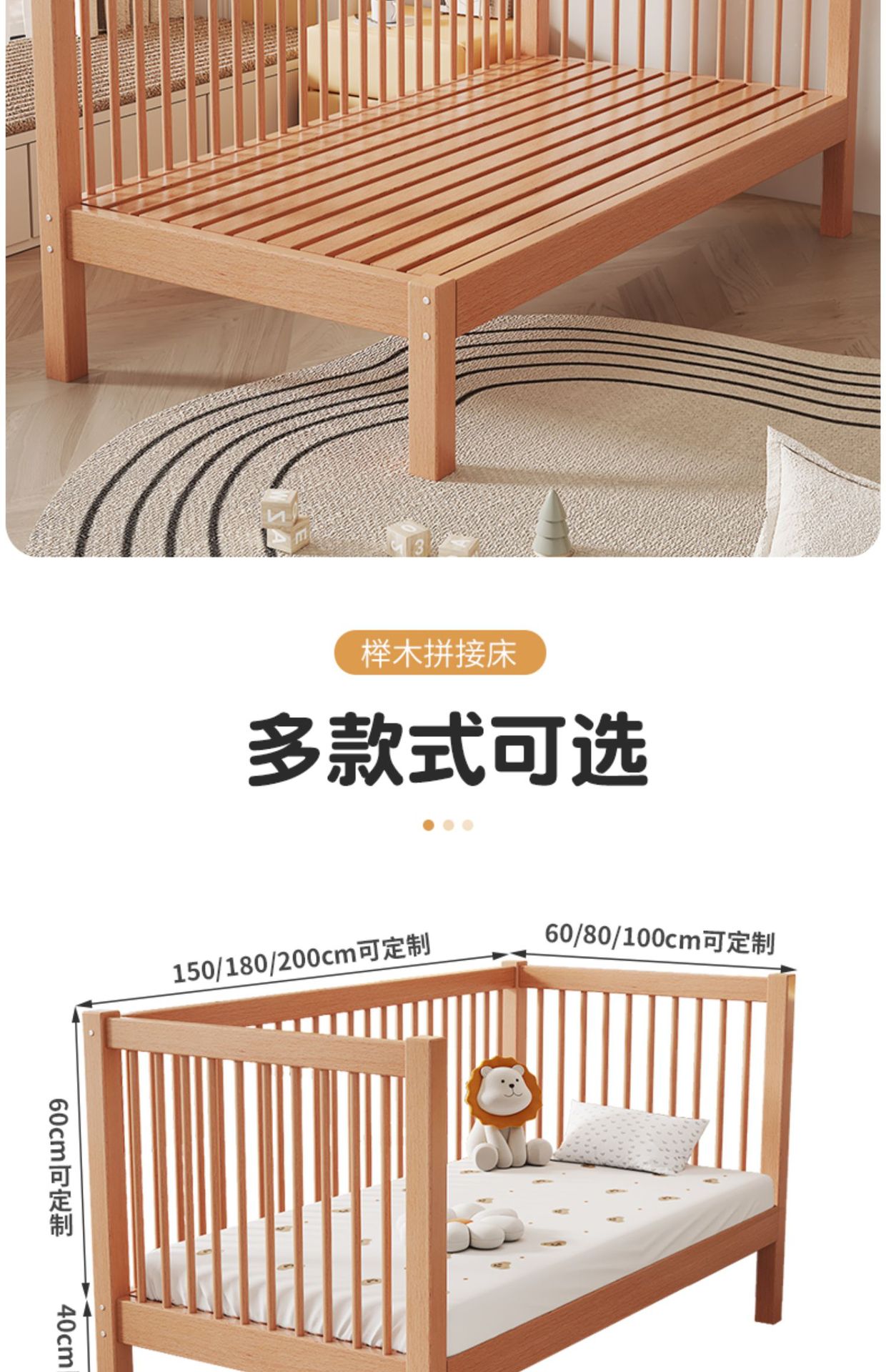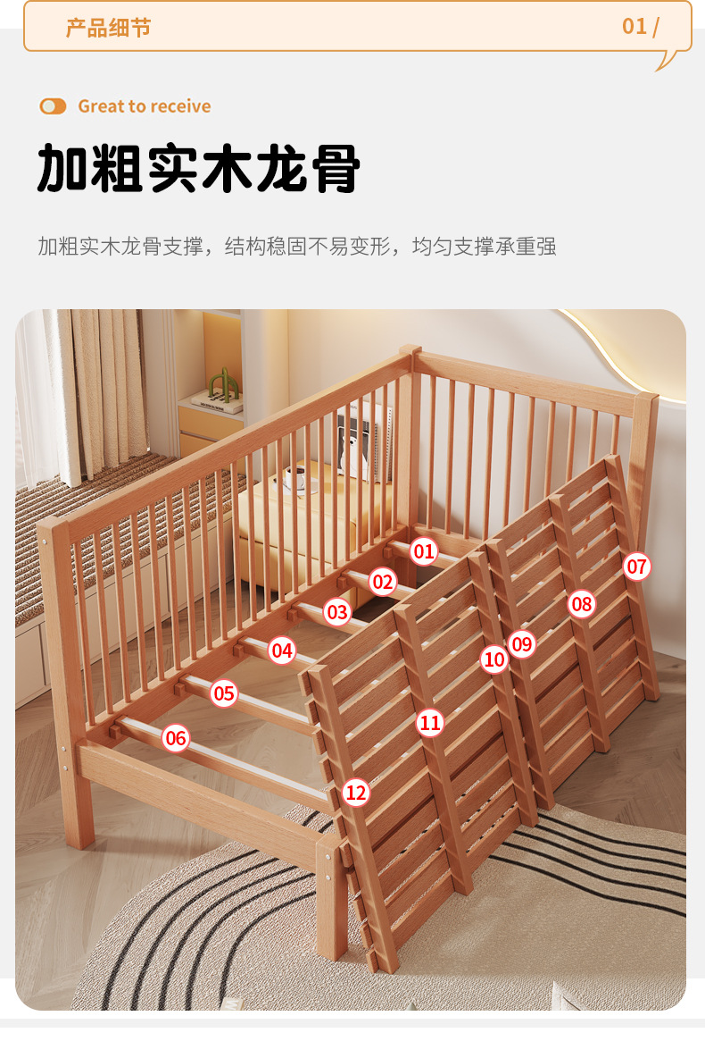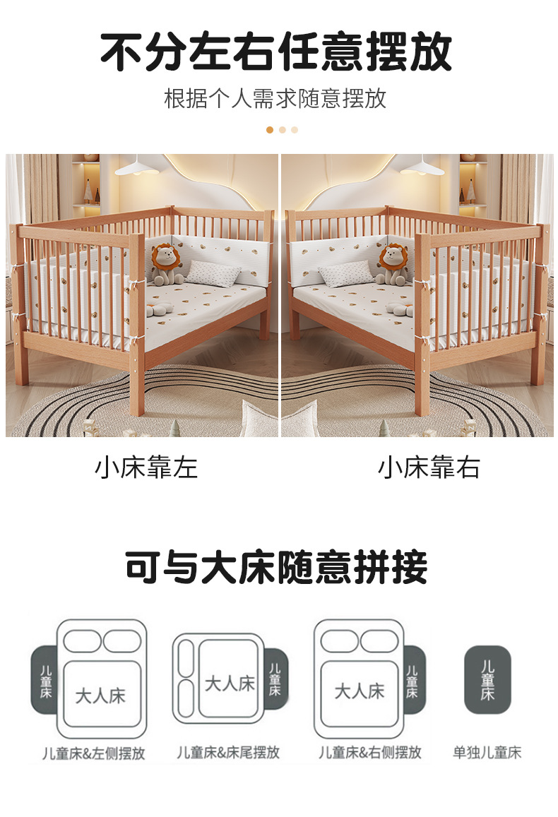 Heated and Widened Beech Children s Splicing Bed Bed Seamless Splicing Big Bed Guardrail Bed Flat Splicing Bed Newborn Baby Side Bed