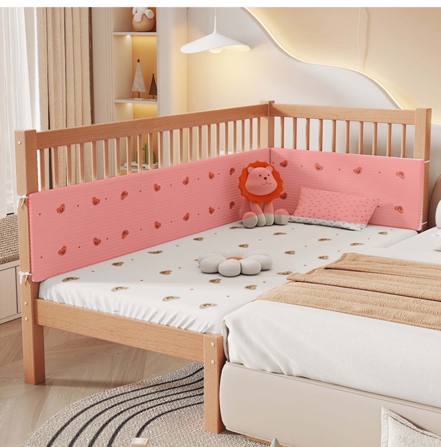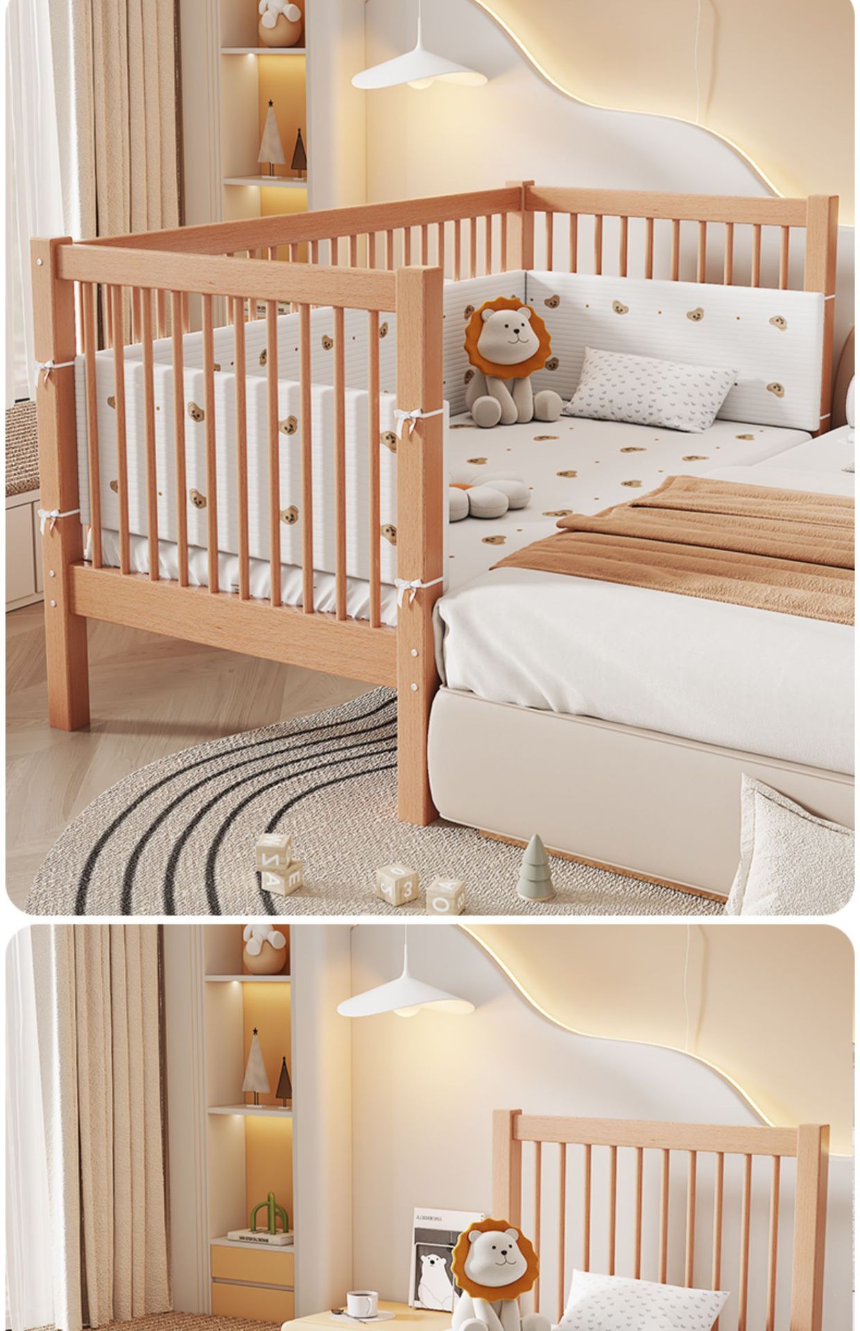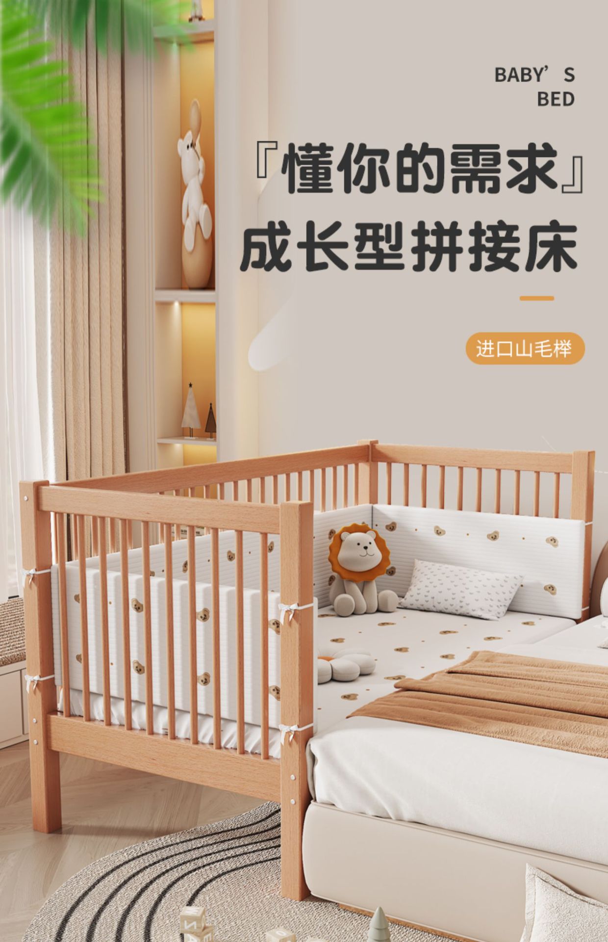 Heated and Widened Beech Children s Splicing Bed Bed Seamless Splicing Big Bed Guardrail Bed Flat Splicing Bed Newborn Baby Side Bed