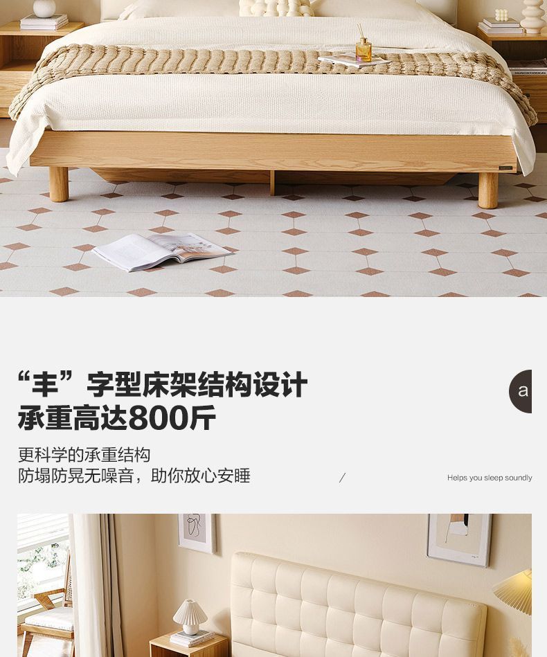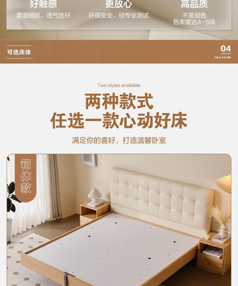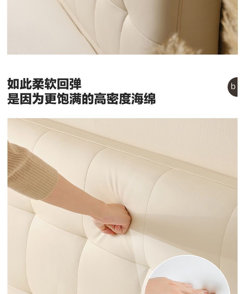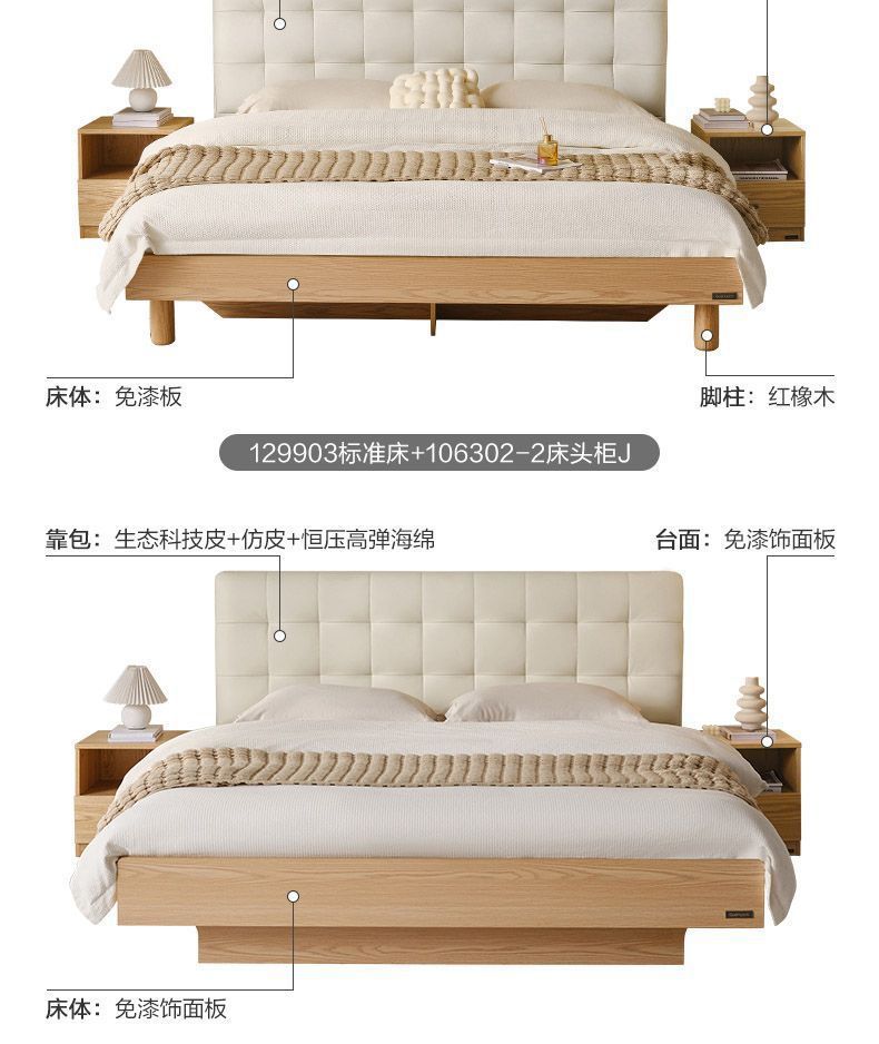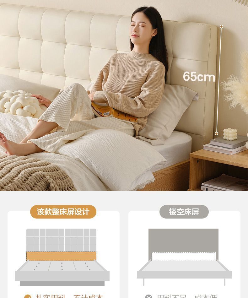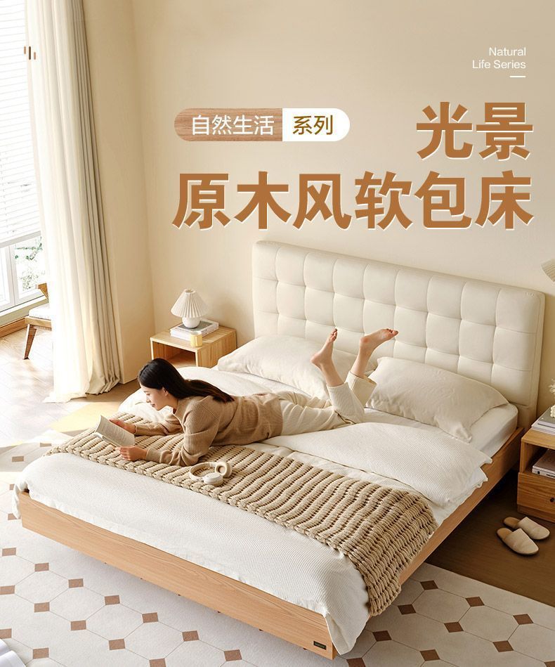 High end Art Bed with Soft Leather Style Log Bedroom Furniture Cream Large Apartment Plate Bed Double Bed