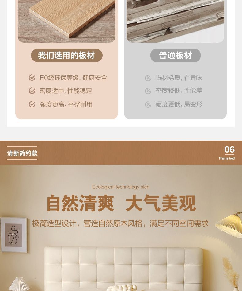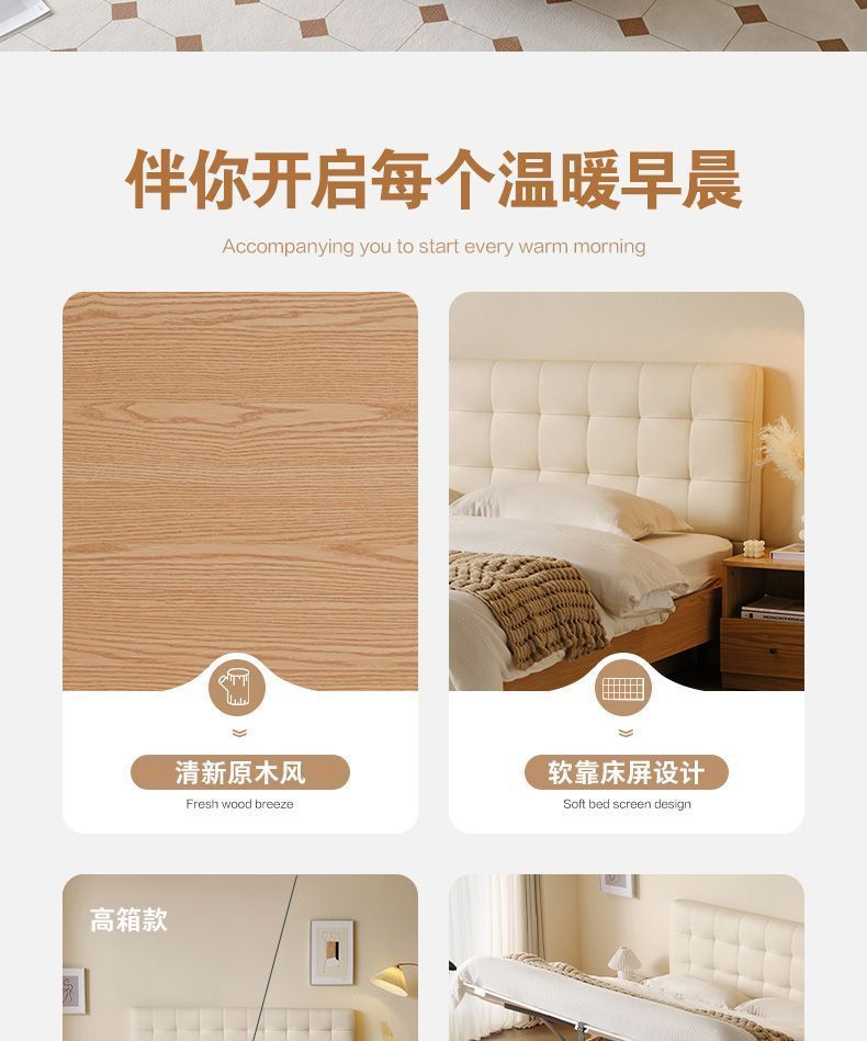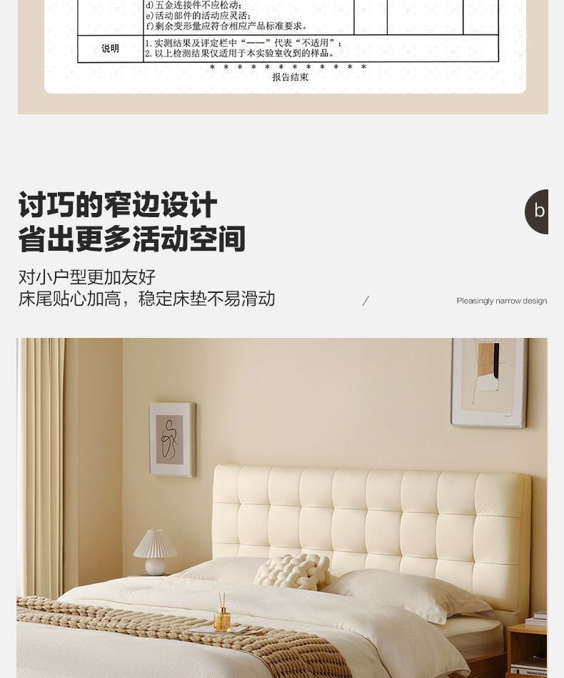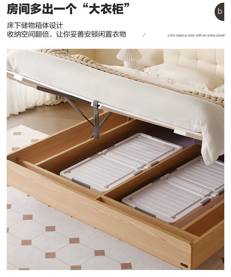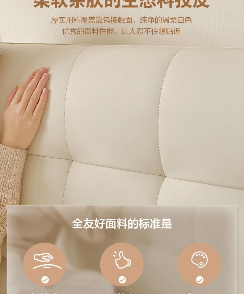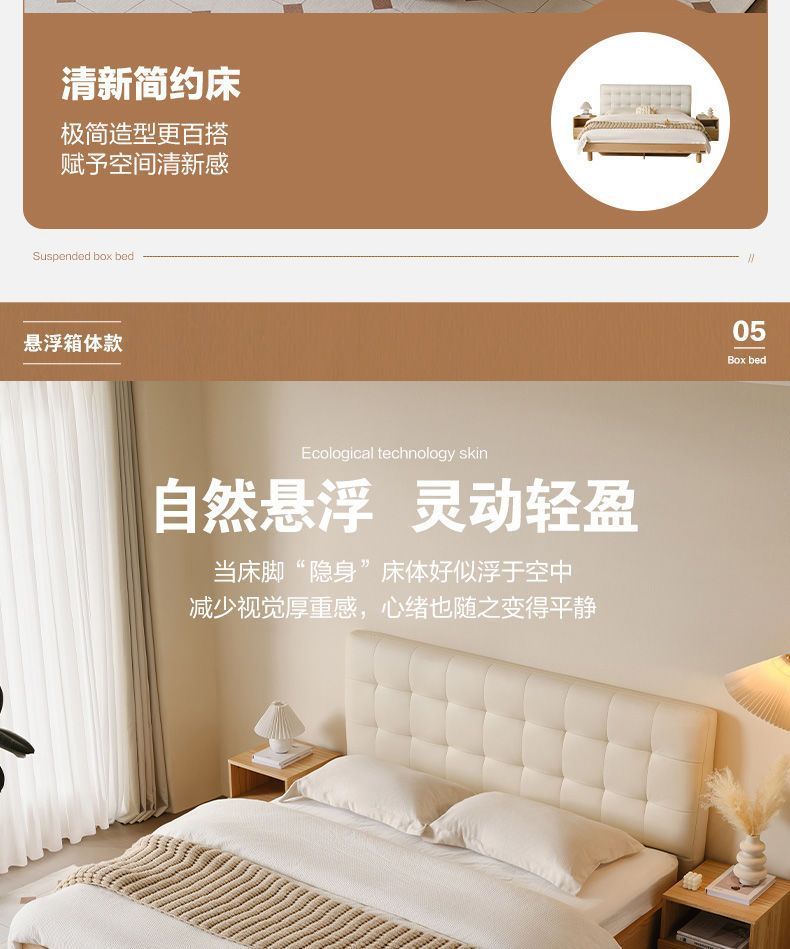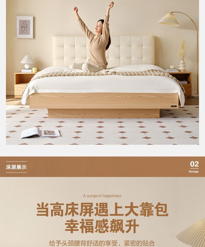 High end Art Bed with Soft Leather Style Log Bedroom Furniture Cream Large Apartment Plate Bed Double Bed