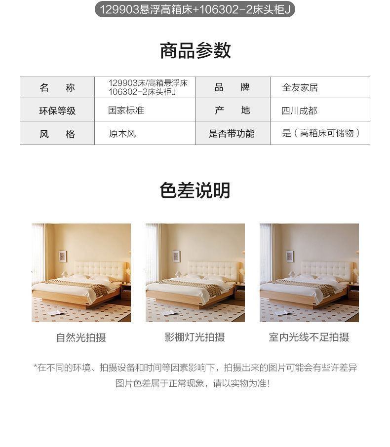 - Suspension Storage Soft Bed Nightstand * 1 Mattress Pillow