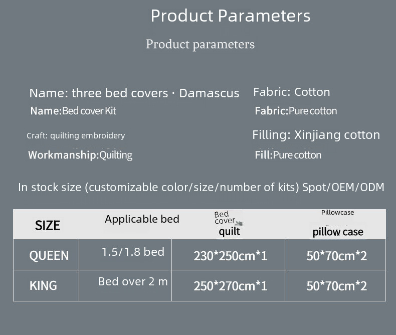 - 1.5-1.8 m bed three-piece set 230 × 250+50 × 70 pillowcase
