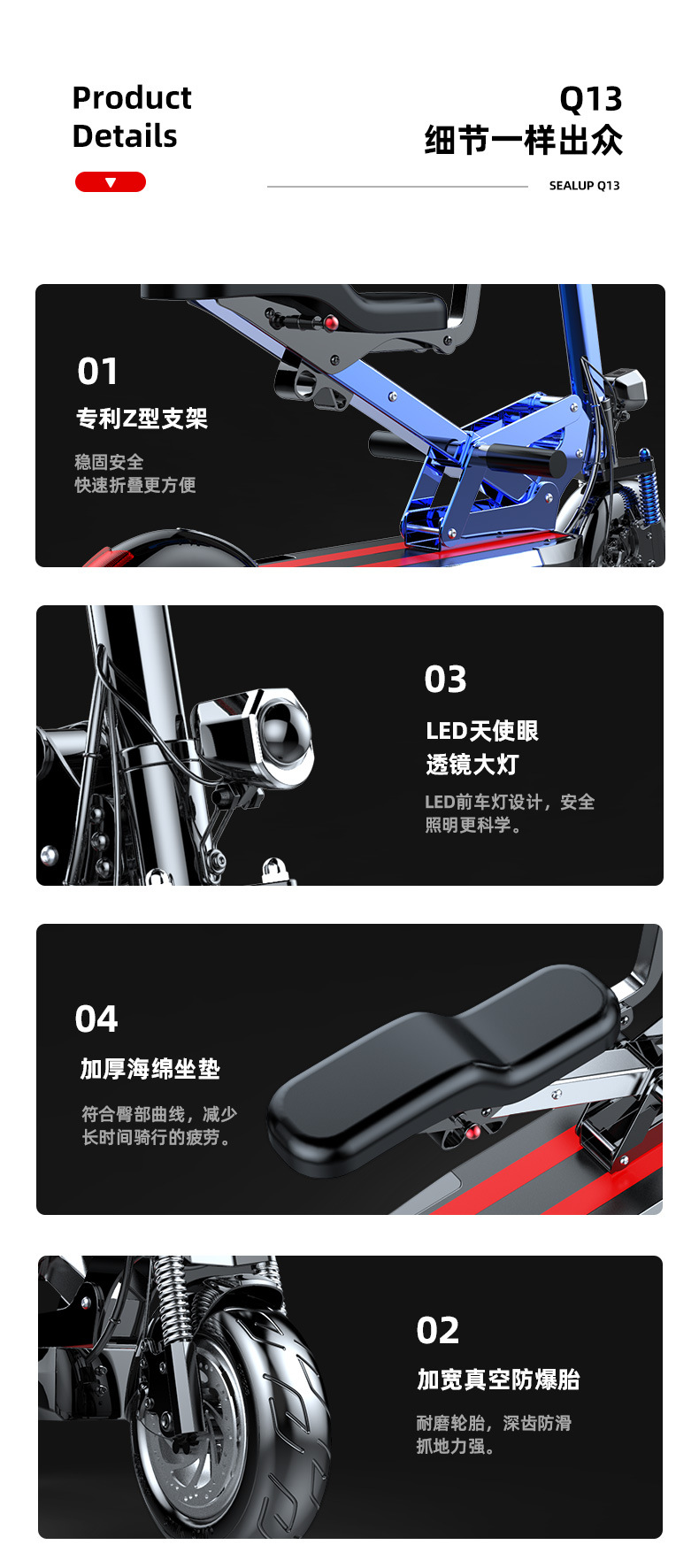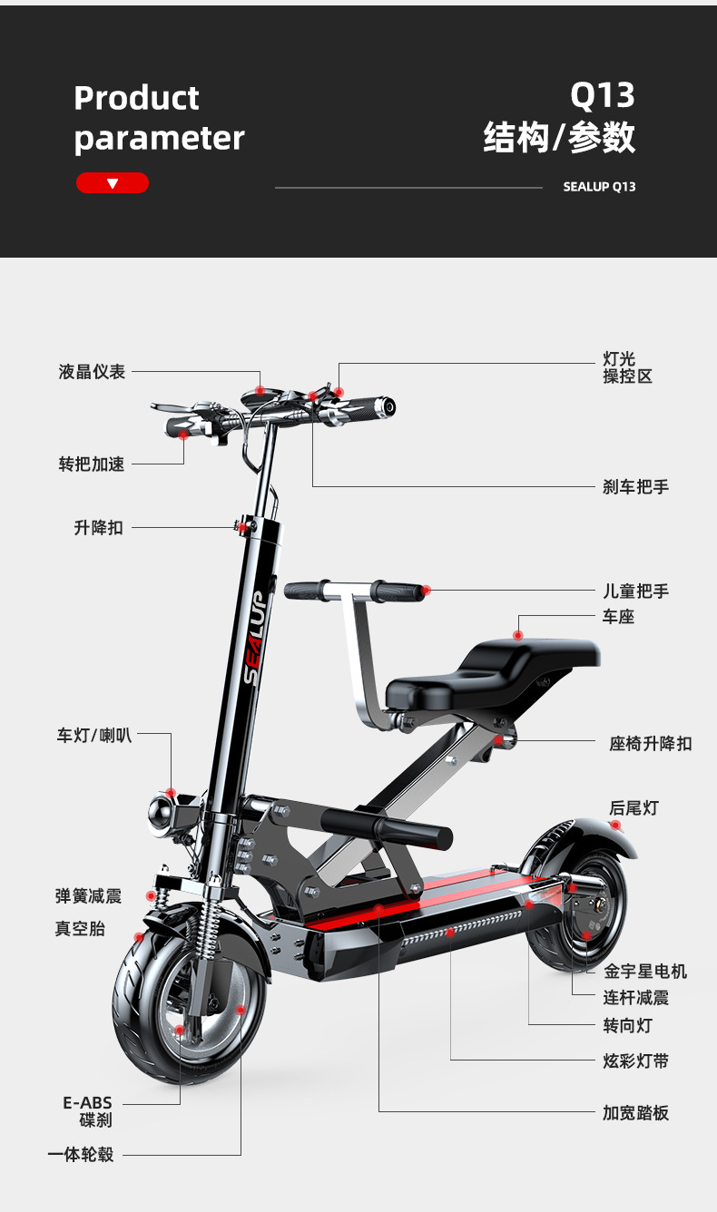 - Q13 black/48V/4th generation widescreen/explosion-proof vacuum tire/national 3C quality inspection motor/40-50km