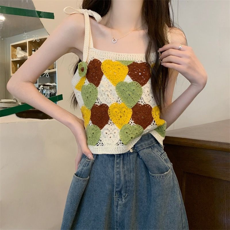 Hollow out lace up tube top camisole women s summer new dopamine wear western style age reducing hot girl short top