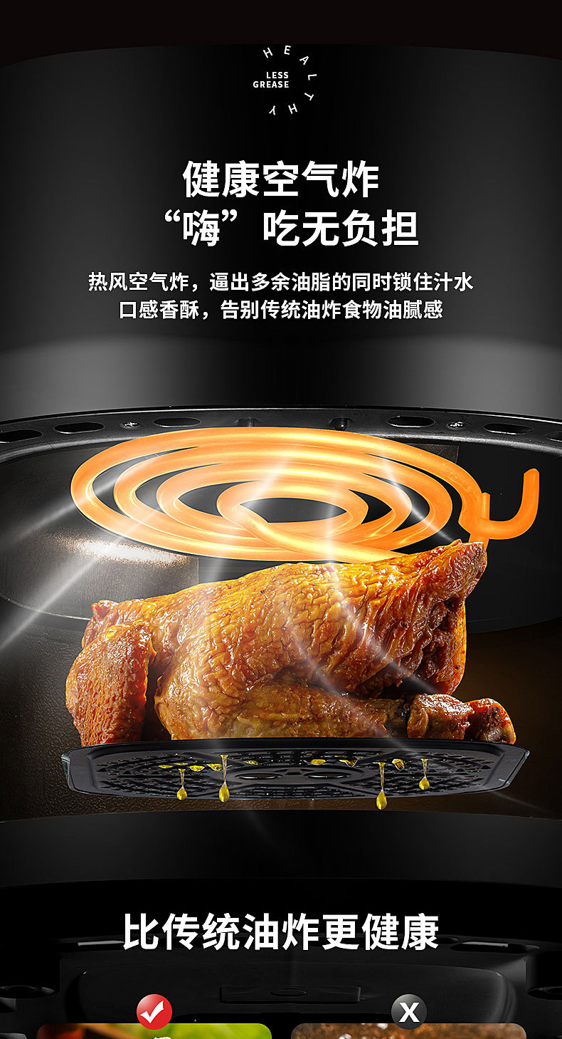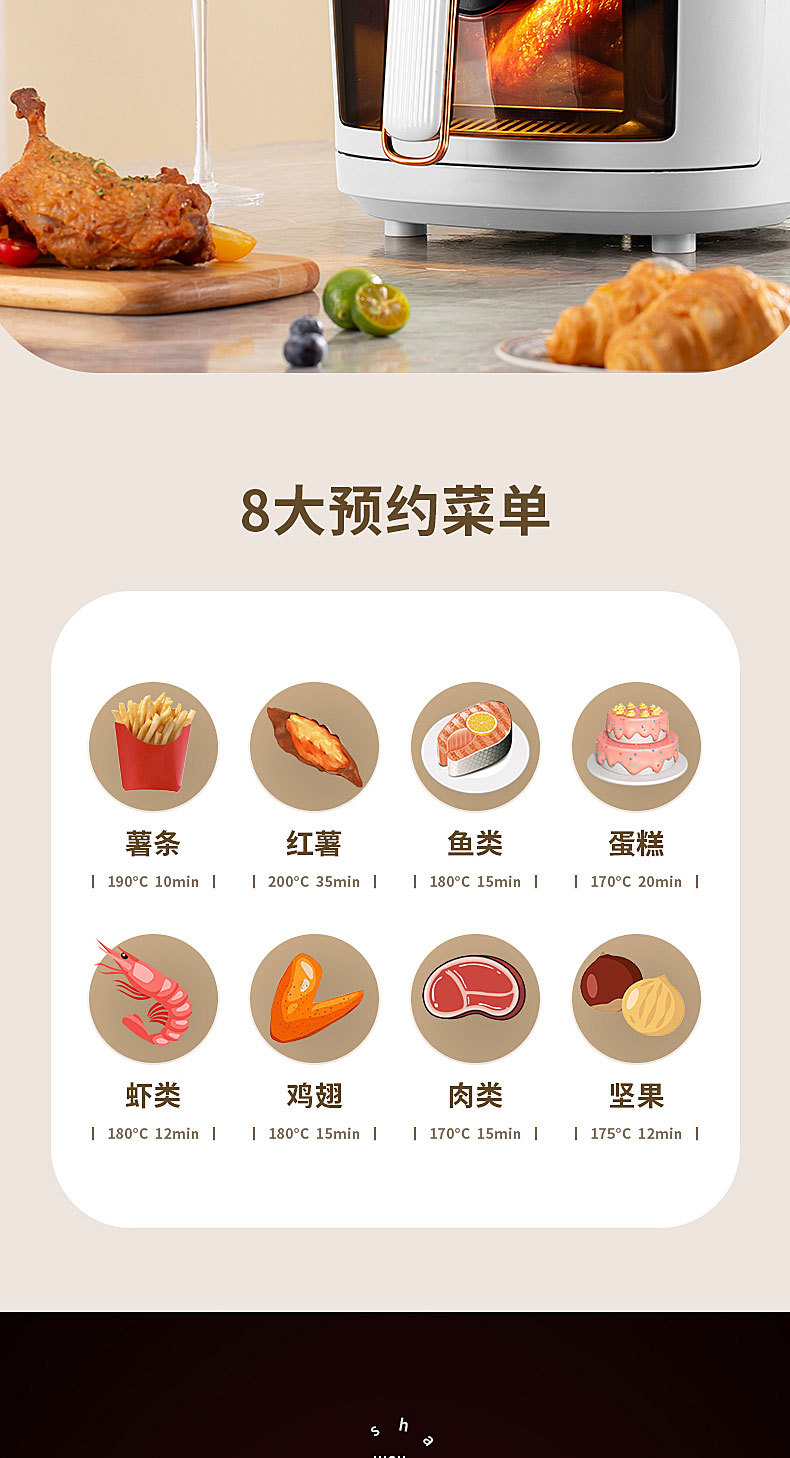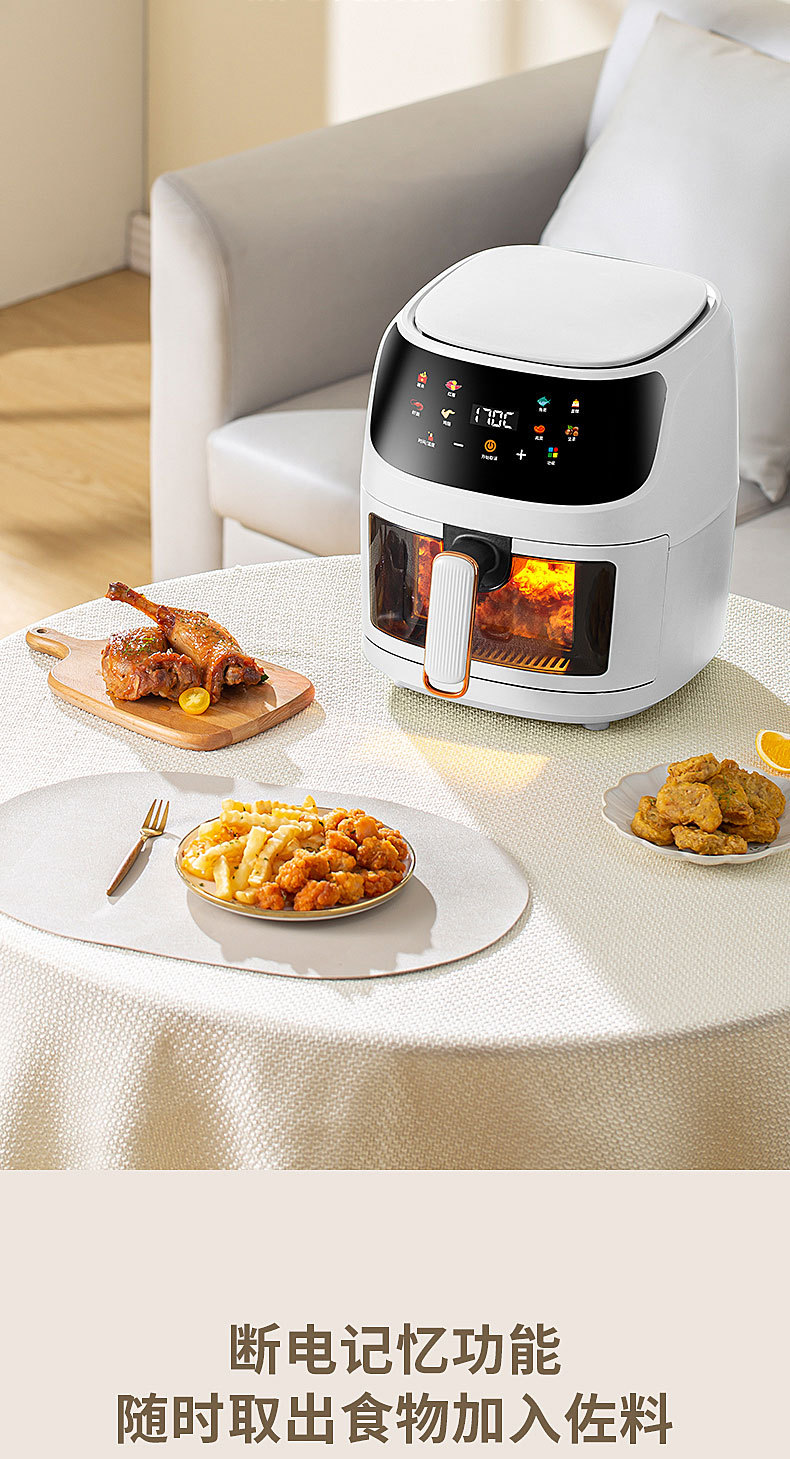 Home Smart 6L large capacity visual color screen touch Air Fryer English 110V220V cross-border trade