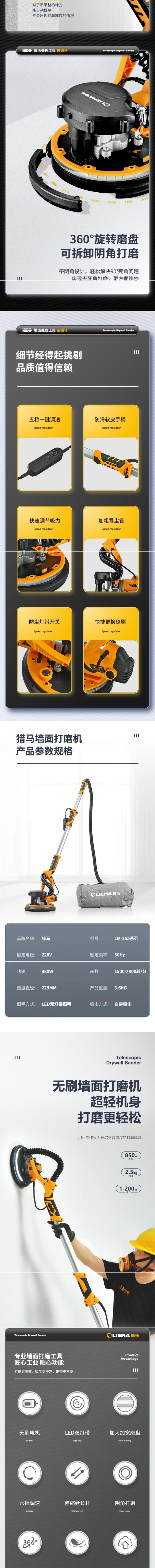 Horse hunting hand held brushless wall polisher long rod sandpaper machine putty sand skin machine polishing tool for wall