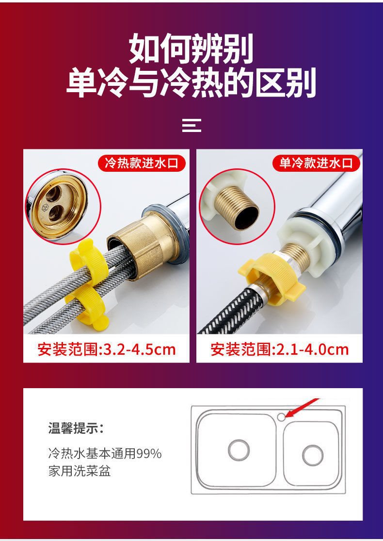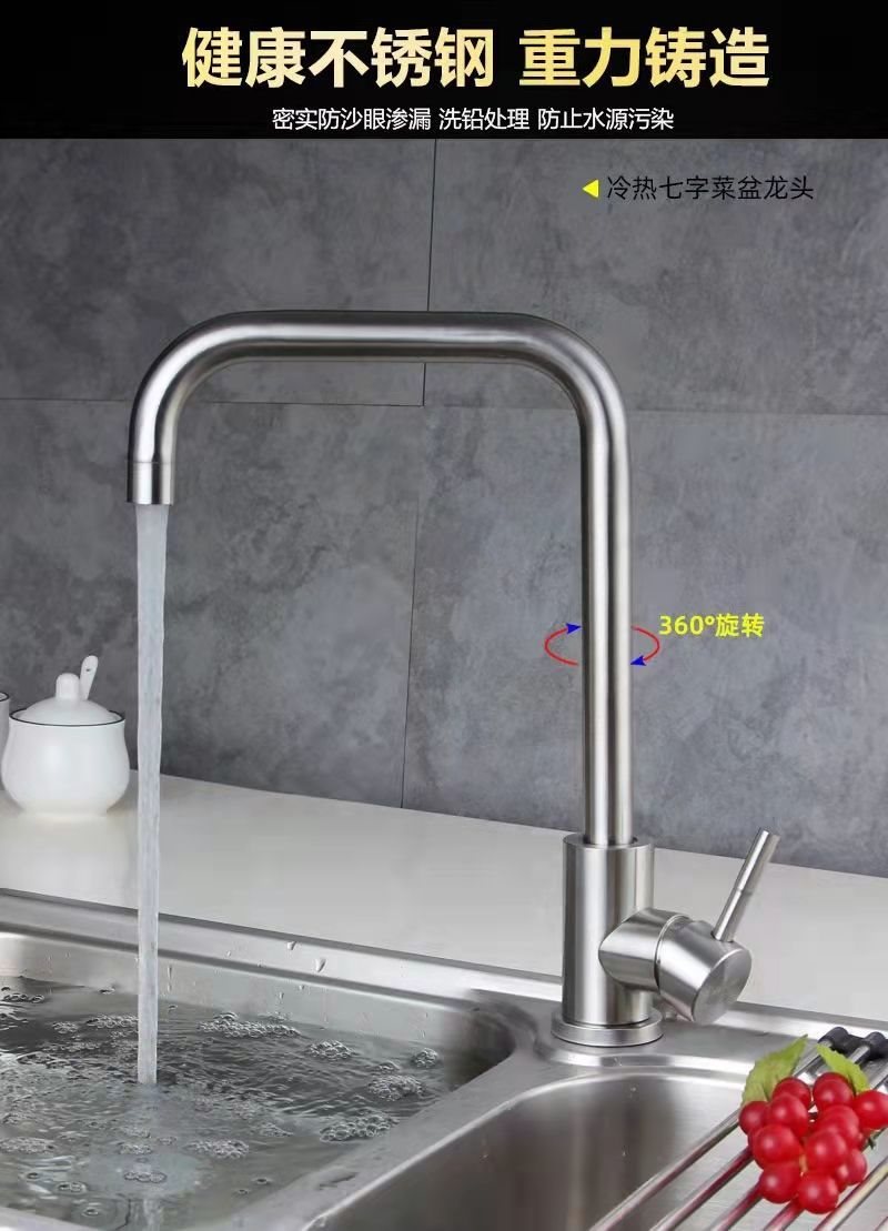Hot and cold faucet switch basin faucet basin sink stainless steel washbasin vegetable basin kitchen dish washing copper core