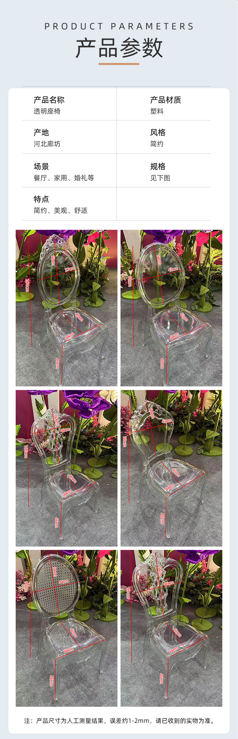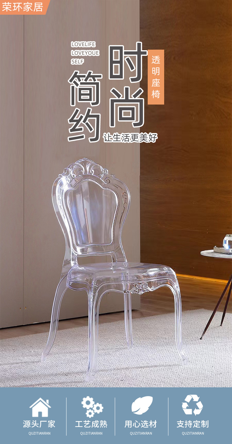 Hotel Wedding Palace chair plastic transparent crystal chair outdoor banquet hall chair acrylic dining table and chair