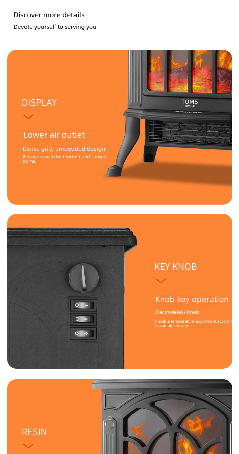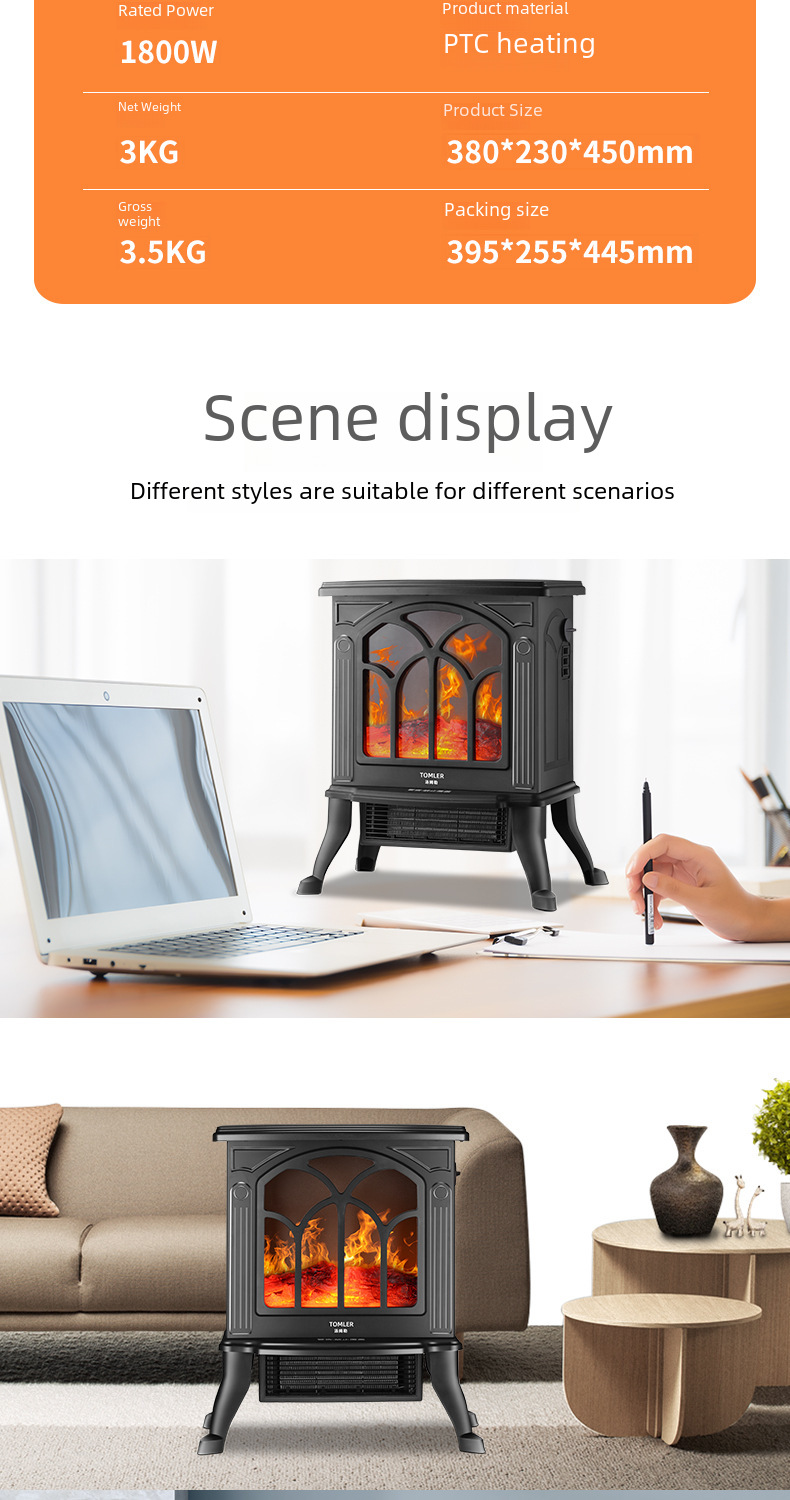 Household Electric Fireplace Heater 3D simulation flame heater European living room hot air blower vertical oven generation