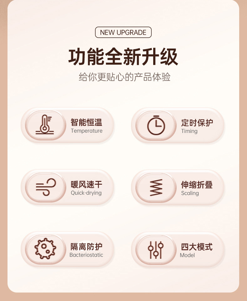3.出风管不能直接对人吹更不能将出风筒伸进嘴里,风有大概40-50度左右的温度,请确保所放物件不会被热风烘坏。