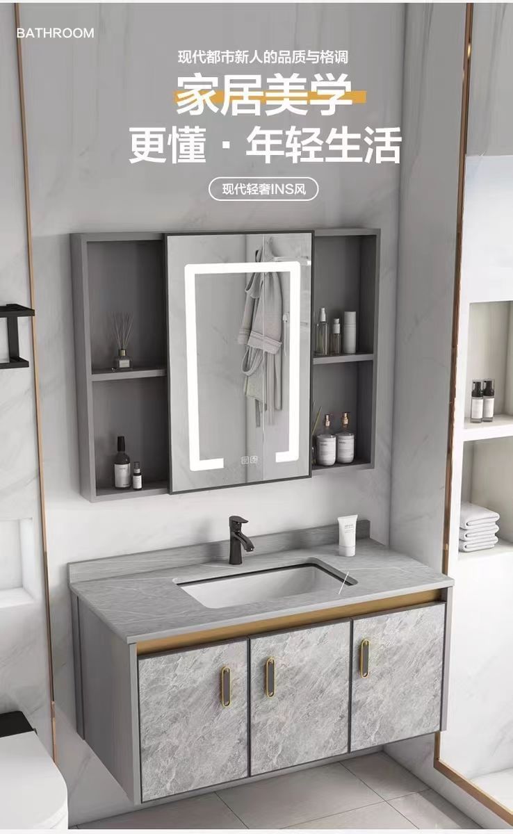 - Full set of accessories [intelligent defogger mirror cabinet]-ink putty 9048 cabinet [rock plate]]