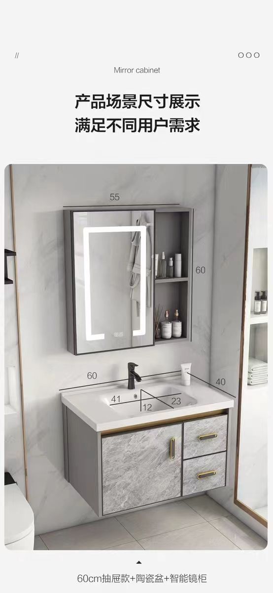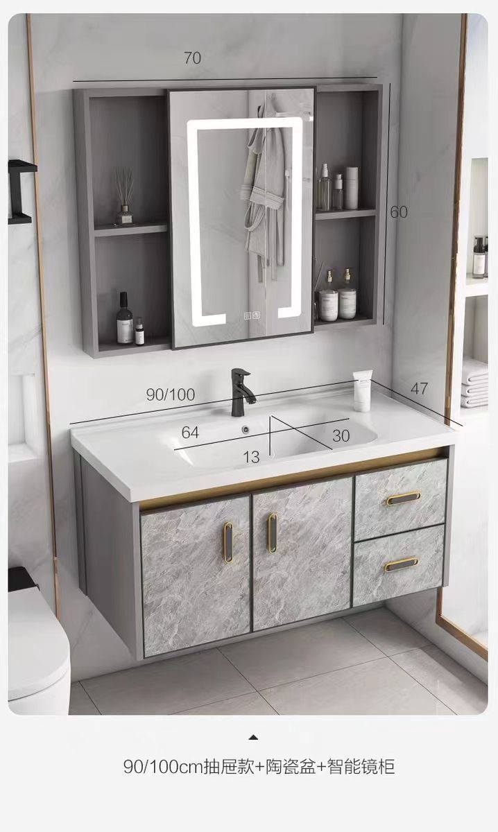 - Full set of accessories [intelligent defogger mirror cabinet]-ink putty 9048 drawer cabinet [ceramic concubine