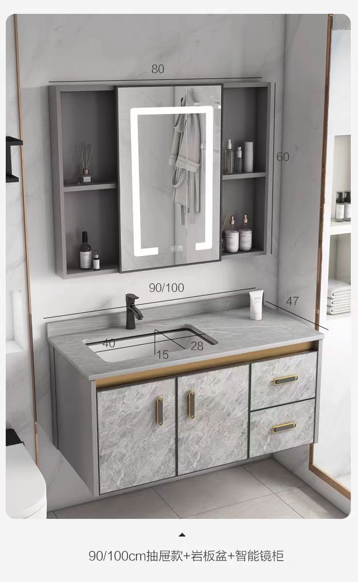- Full set of accessories [intelligent defogger mirror cabinet]-ink putty 9048 drawer cabinet [rock plate