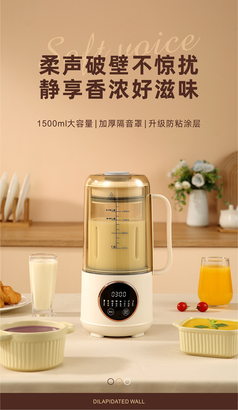 - 1500 ml anti-paste bottom 12-leaf fine steel knife soundproof cover automatic cleaning brush