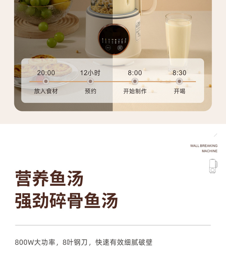 - 800 ml anti-paste bottom anti-overflow light sound motor 10 leaf knife