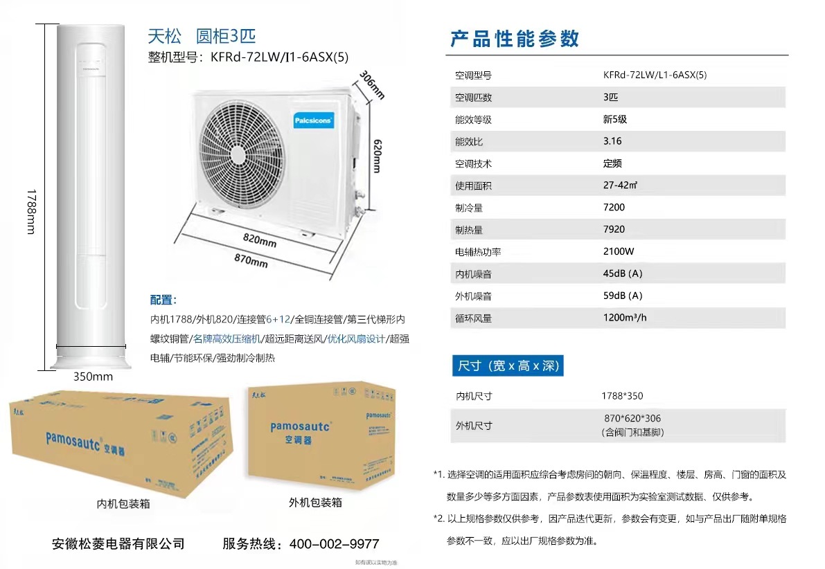 Household heating and cooling 3 cylindrical air conditioner 72 Cabinet machine living room rental room apartment fixed frequency heating and cooling vertical air conditioner