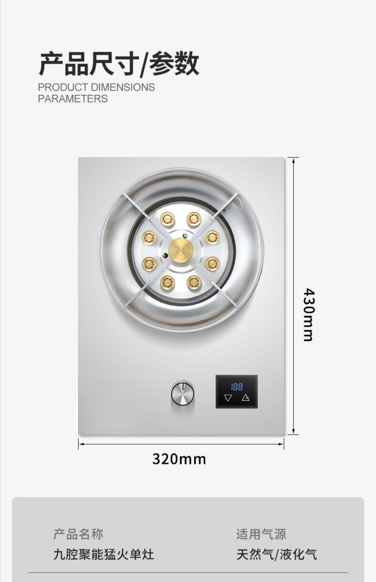 - Flagship thickened stainless steel nine-chamber fierce fire copper cover/timing flameout protection energy-gathering basin