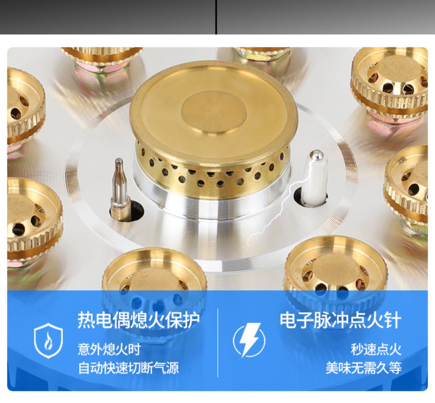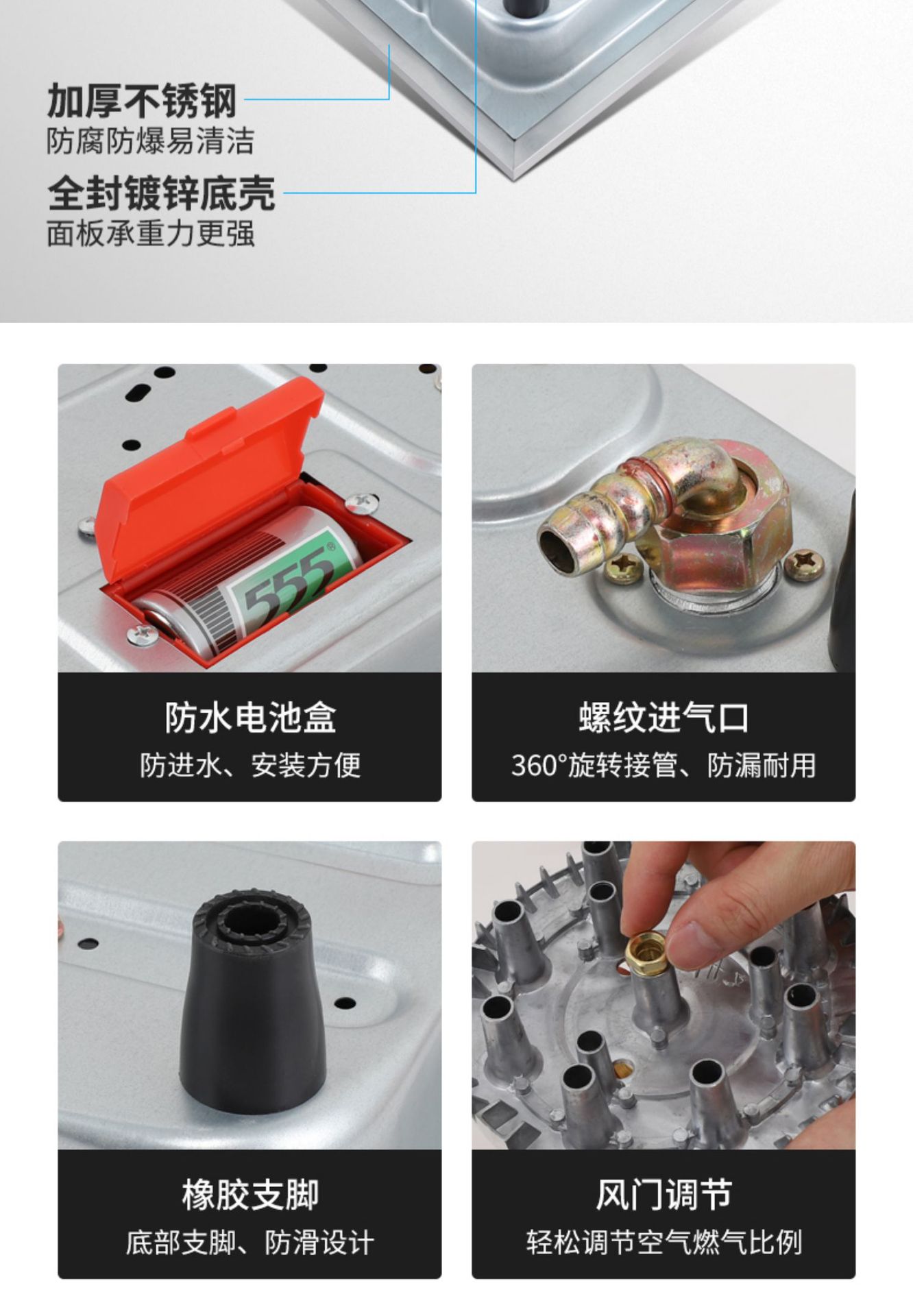 - Top with thickened stainless steel nine-chamber fierce fire copper cover/timing flameout protection