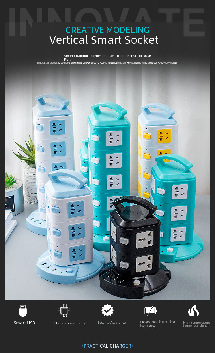 Household usb vertical socket multi functional home desktop plug in Office multi purpose plug in cable