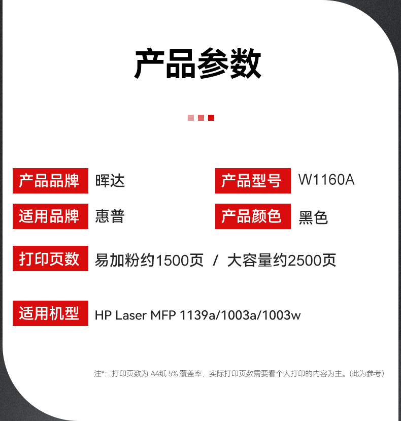 Huida is applicable to HP 1003w toner cartridge W1160AC HP MFP 1139A toner cartridge 1005a W1160A