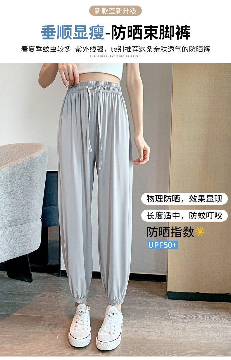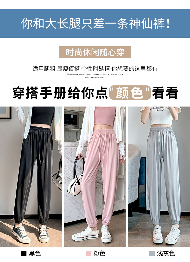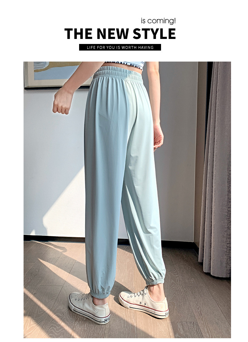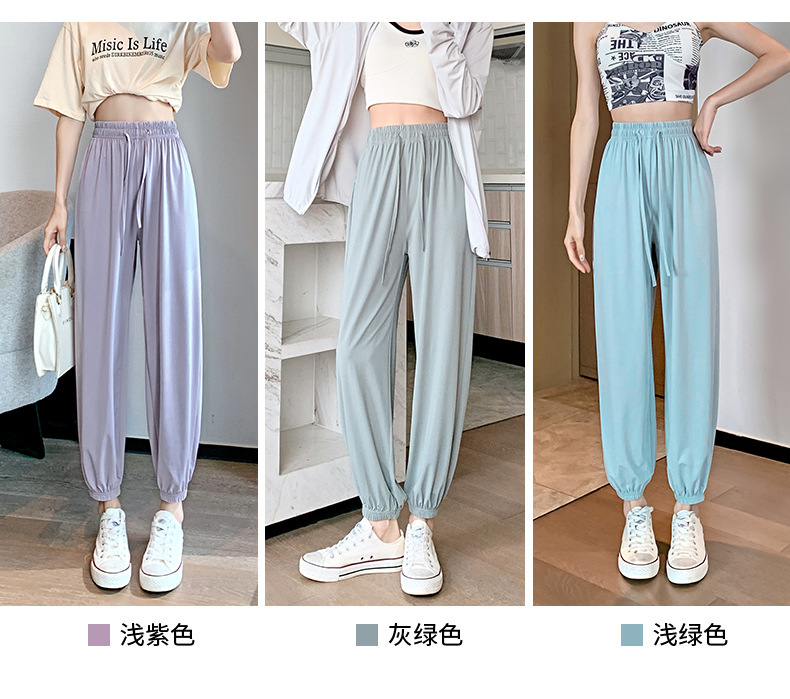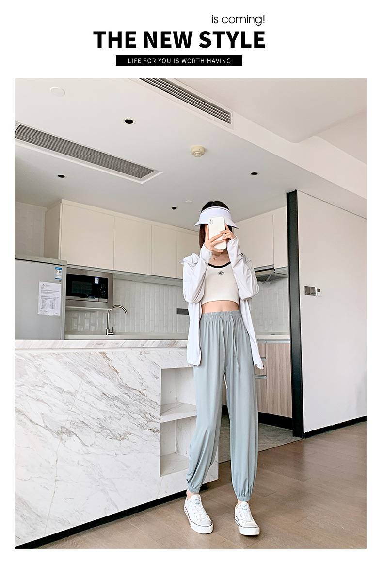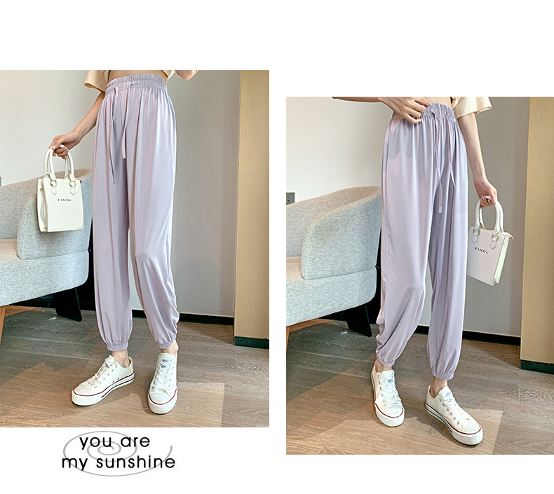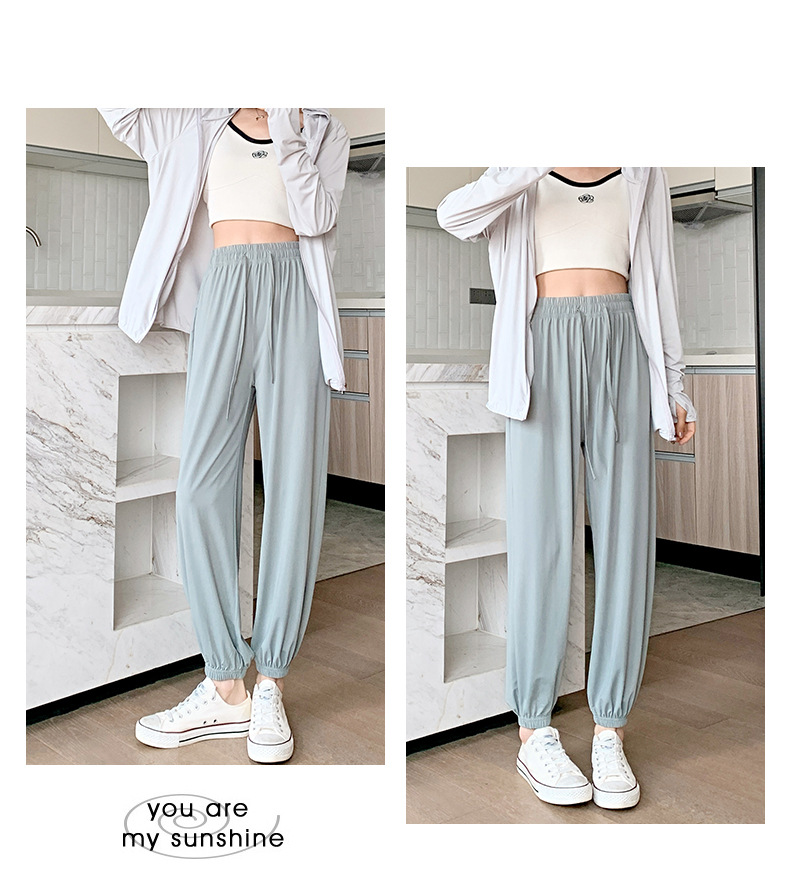 Ice Silk Cool Sun Protection Ankle Pants Women s Summer High Waist Thin Bloomers Slim Look Student Large Size Sports Casual Pants