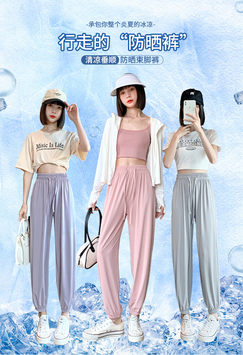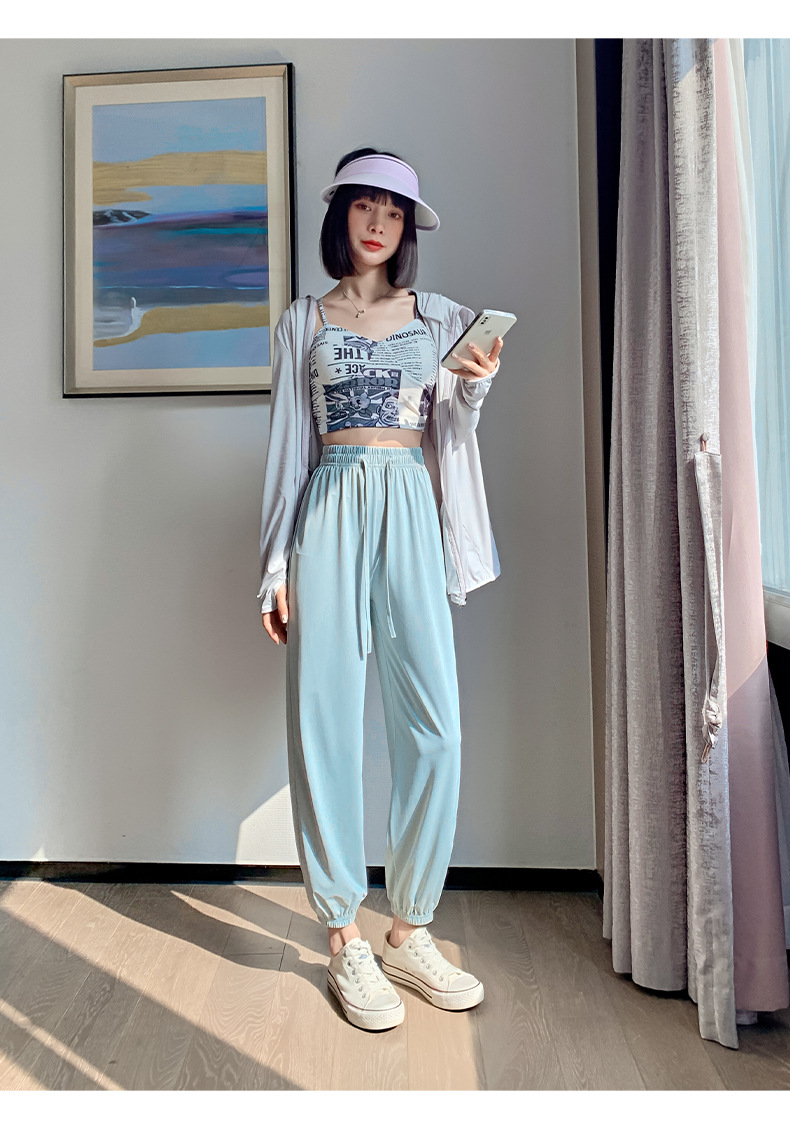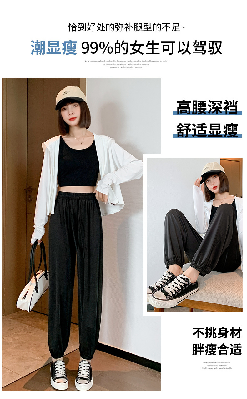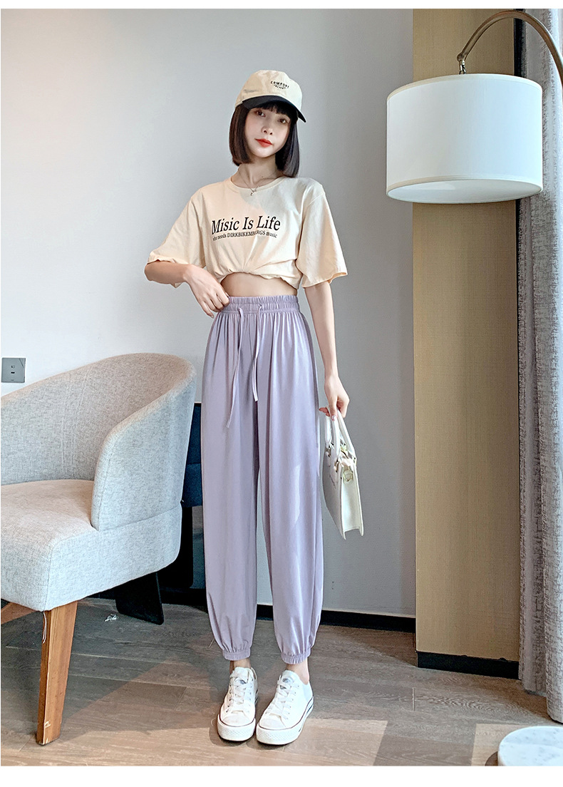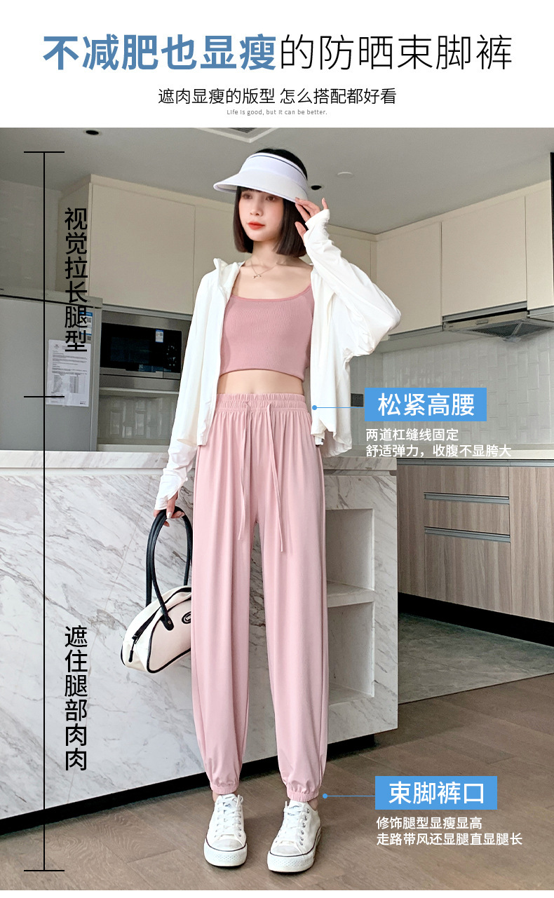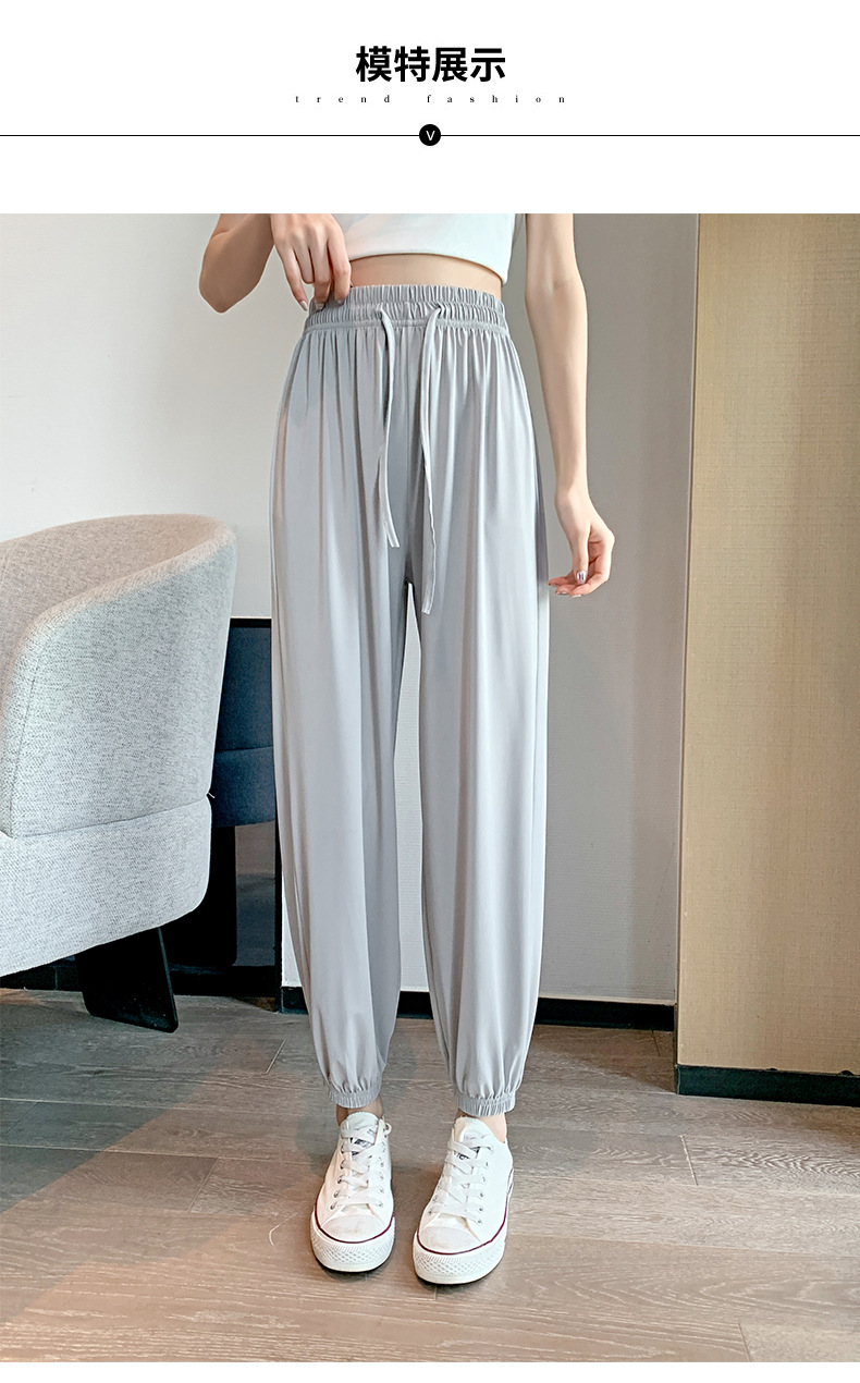 Ice Silk Cool Sun Protection Ankle Pants Women s Summer High Waist Thin Bloomers Slim Look Student Large Size Sports Casual Pants