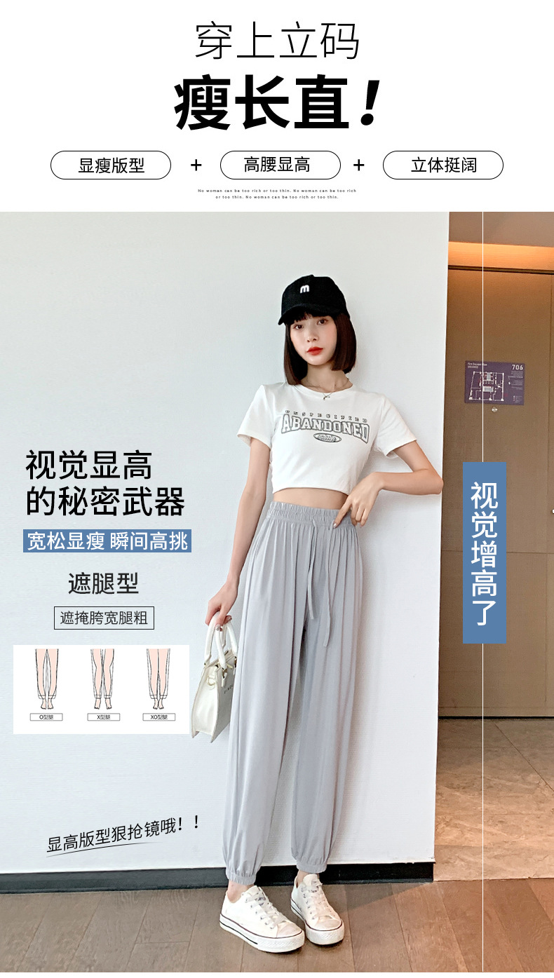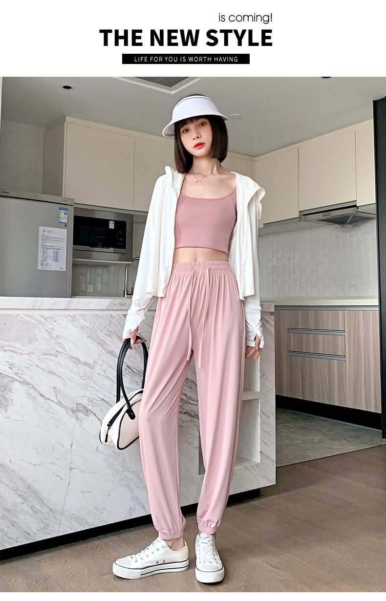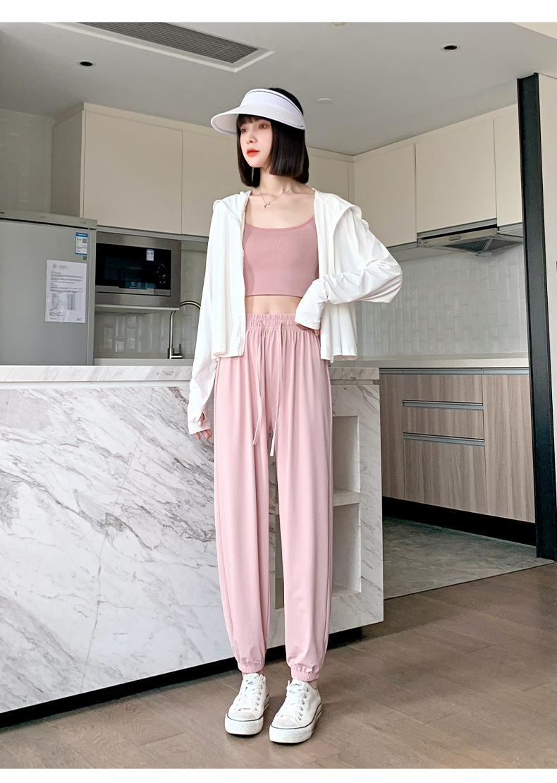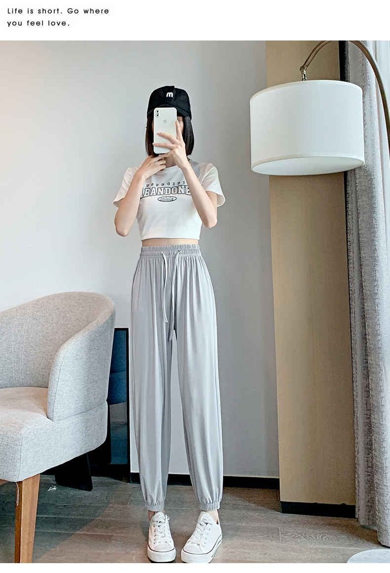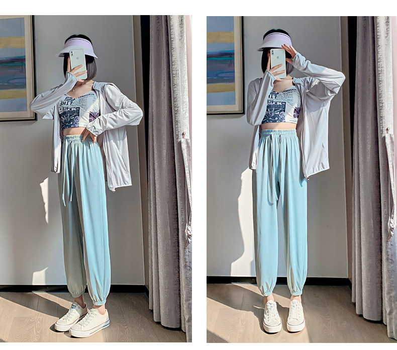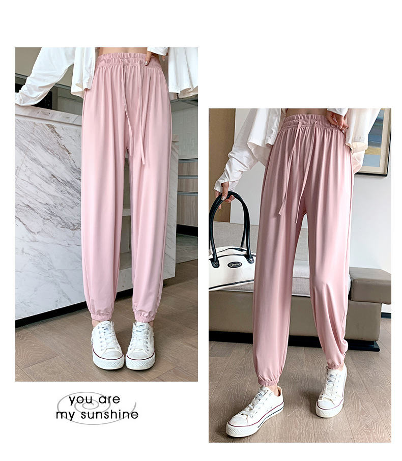 Ice Silk Cool Sun Protection Ankle Pants Women s Summer High Waist Thin Bloomers Slim Look Student Large Size Sports Casual Pants