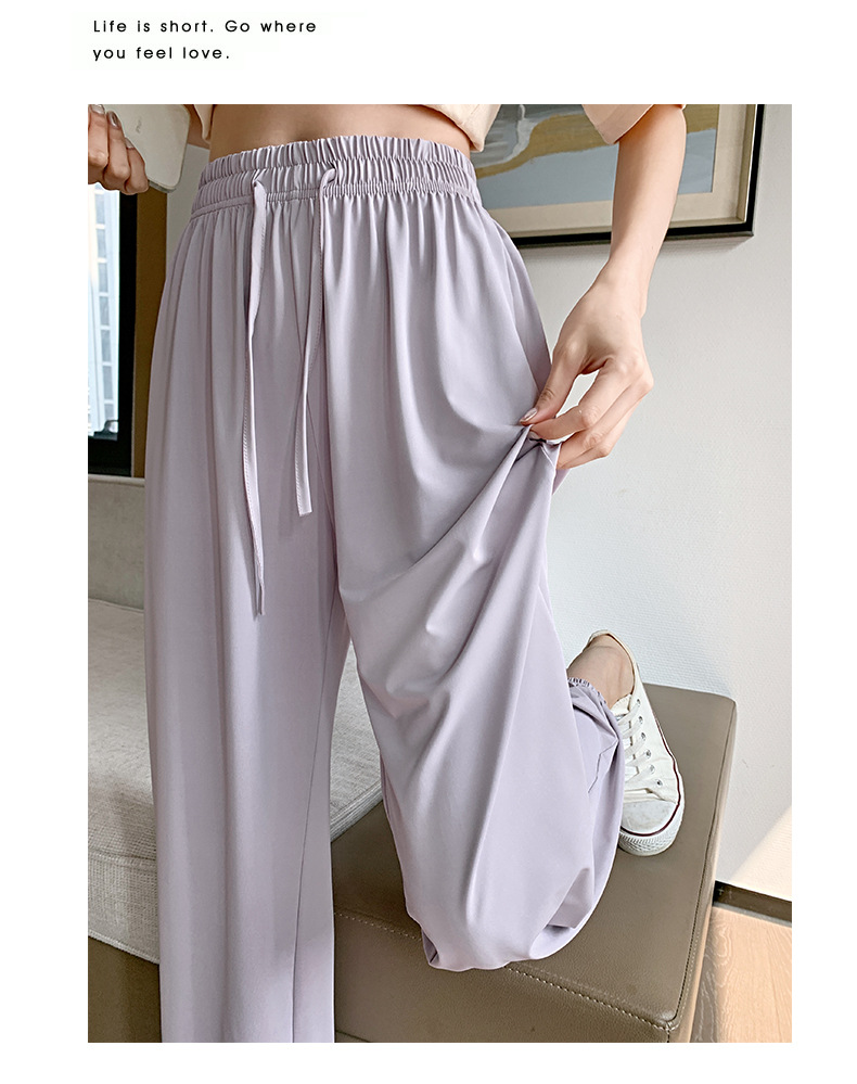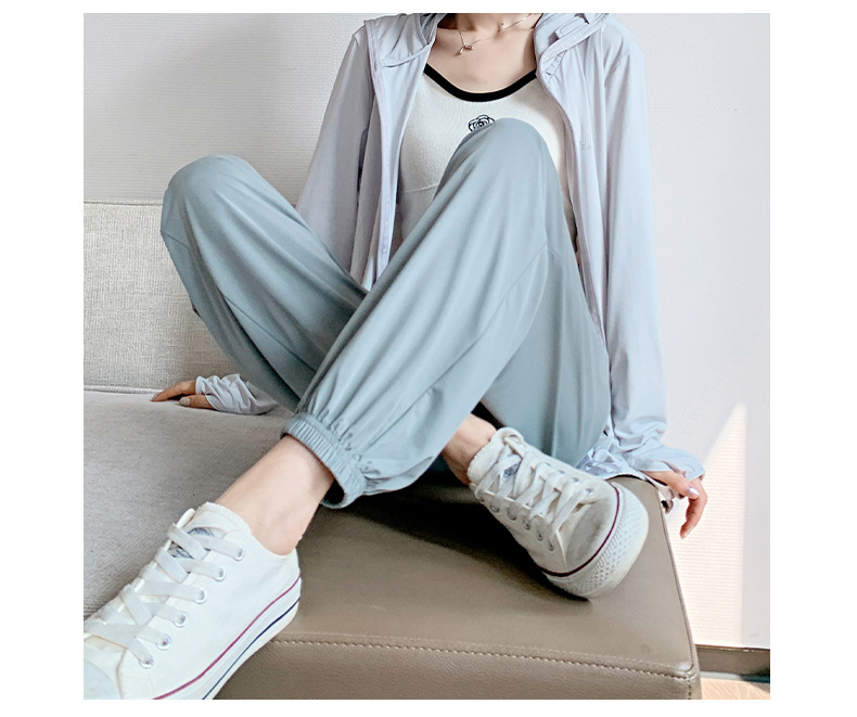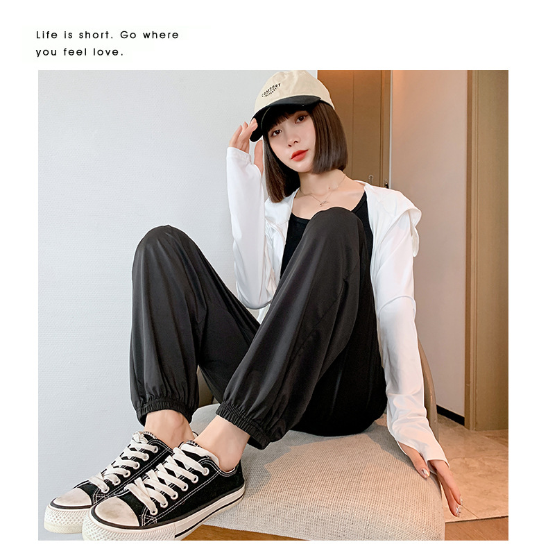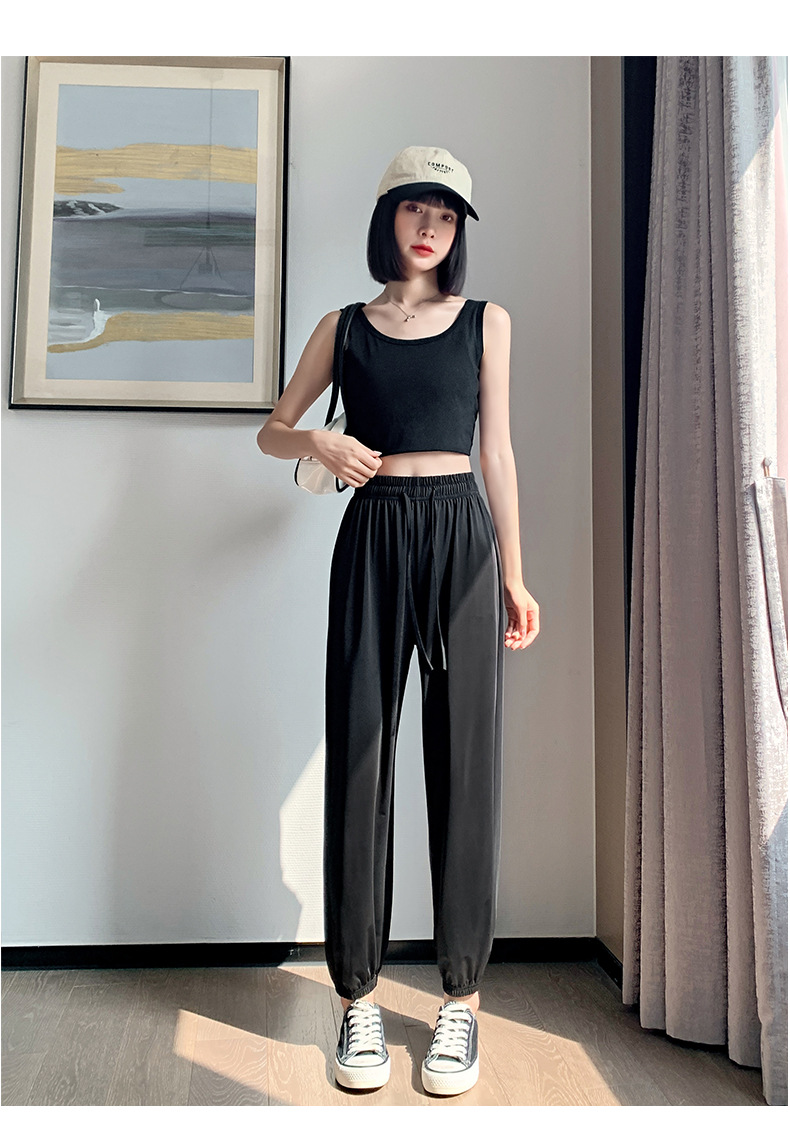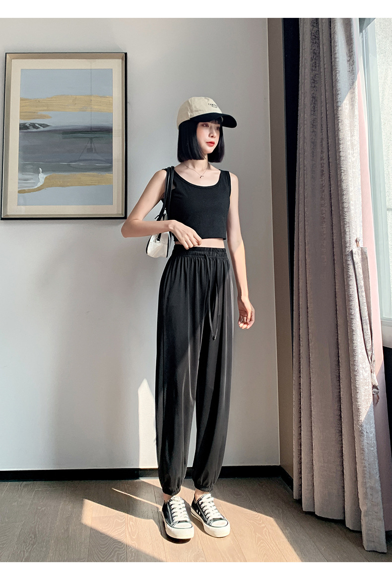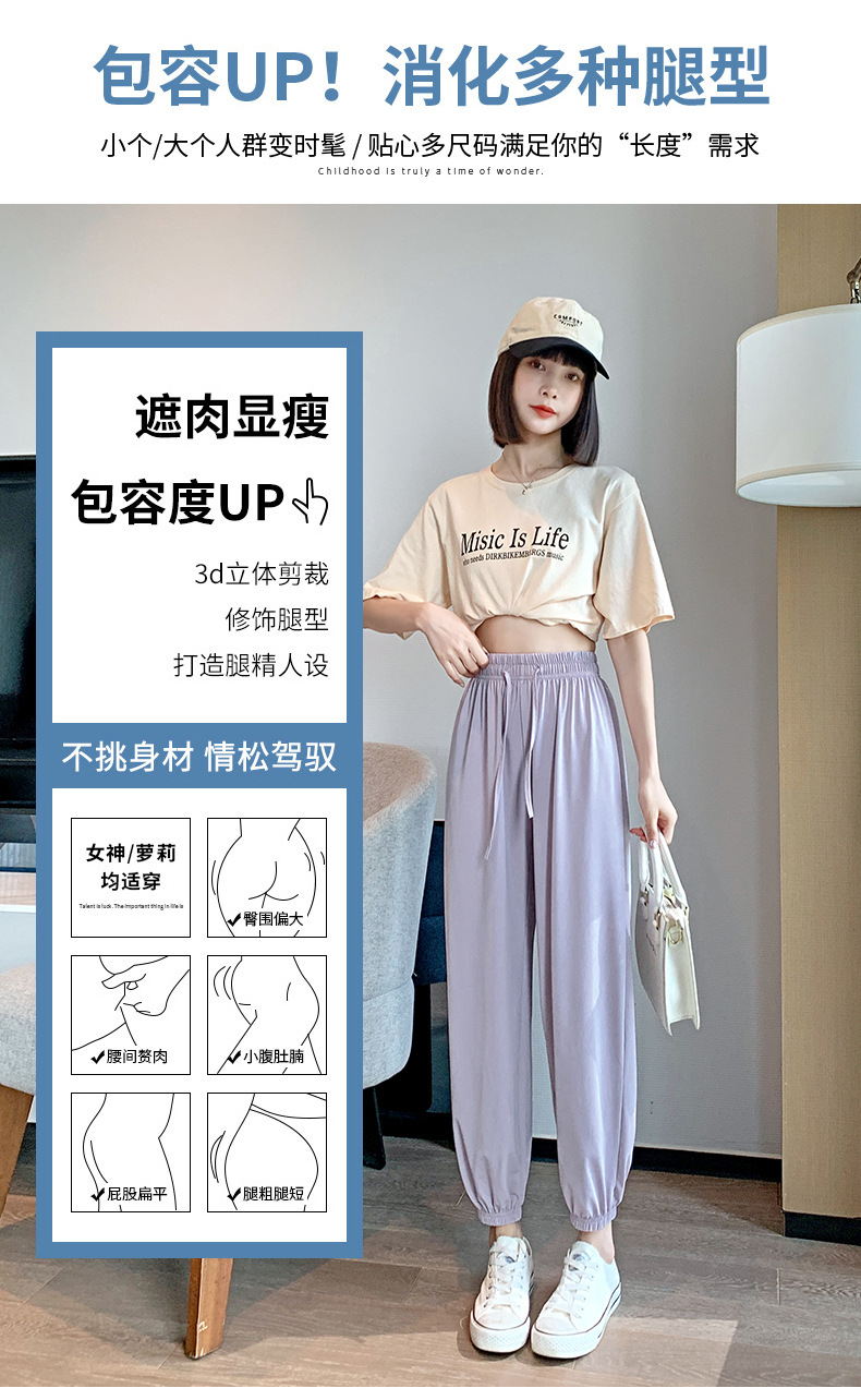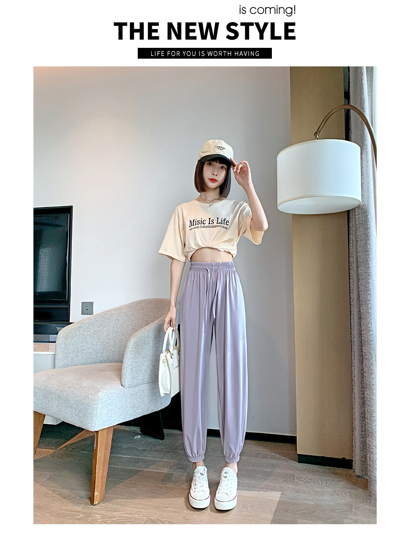 Ice Silk Cool Sun Protection Ankle Pants Women s Summer High Waist Thin Bloomers Slim Look Student Large Size Sports Casual Pants
