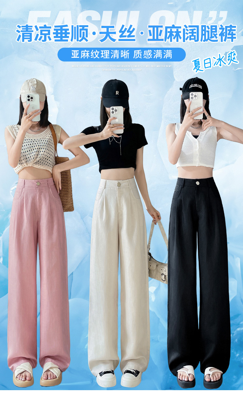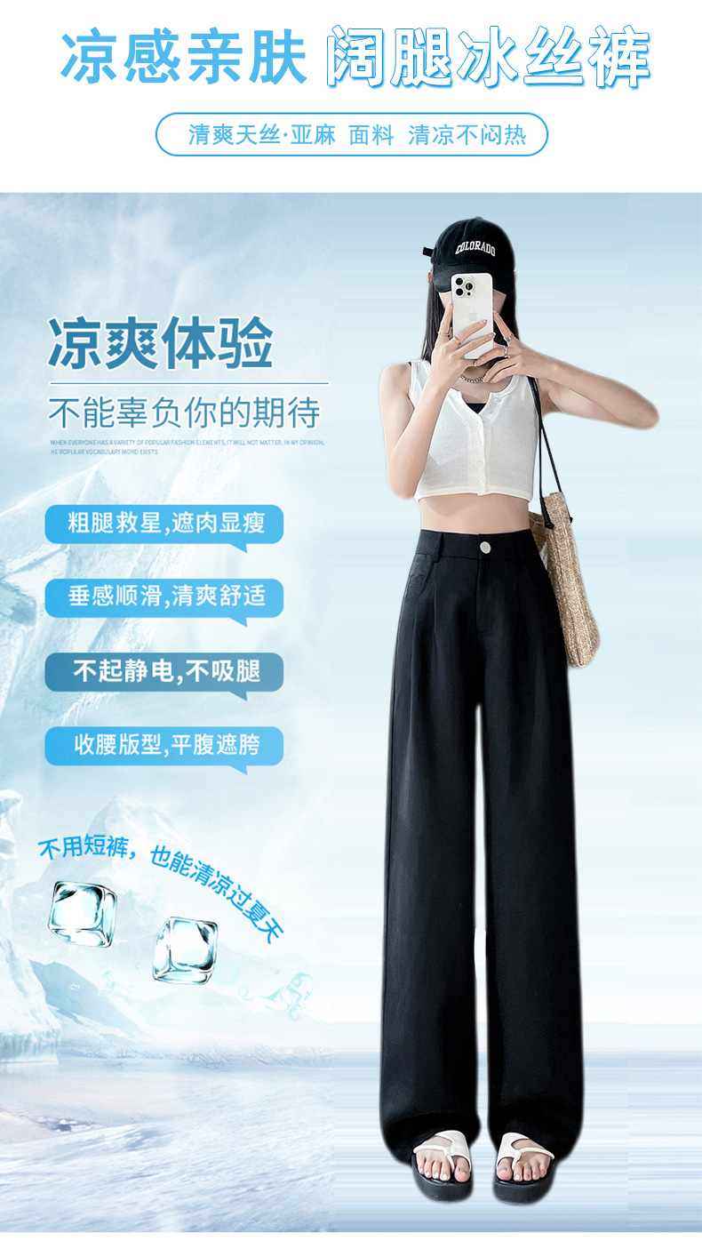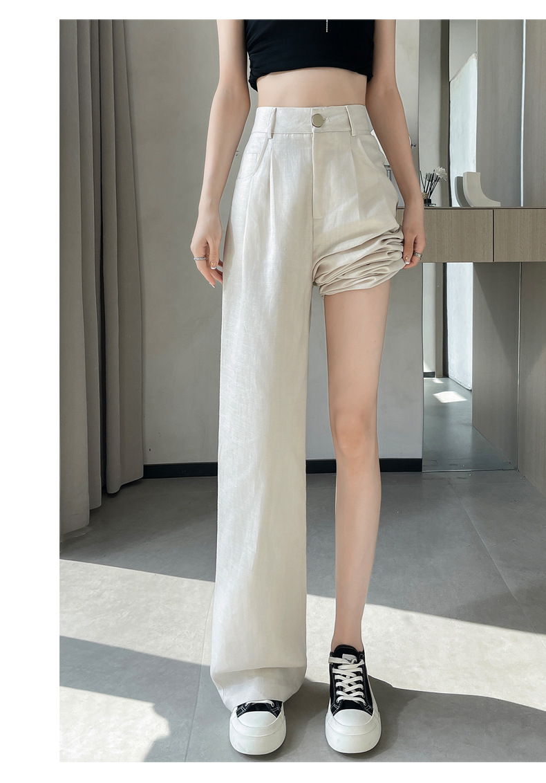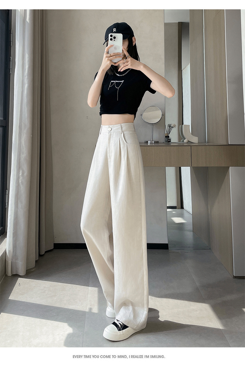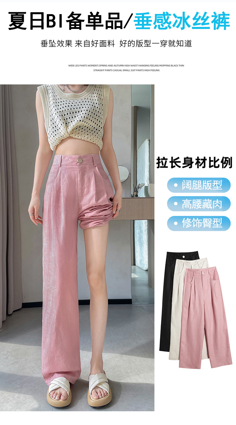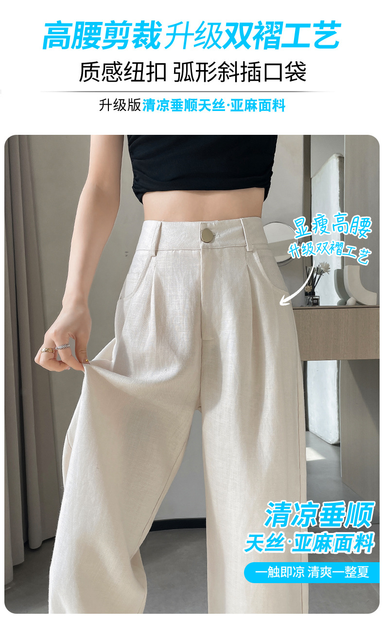 Ice Silk Linen Wide Leg Pants Women s Summer Thin Narrow Straight Leg Suit Pants Casual Cool Dagging Cotton and Linen Yamamoto Pants