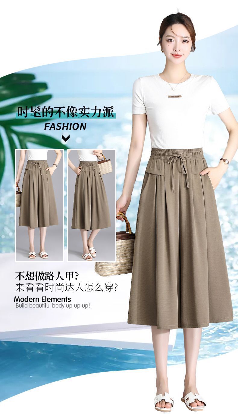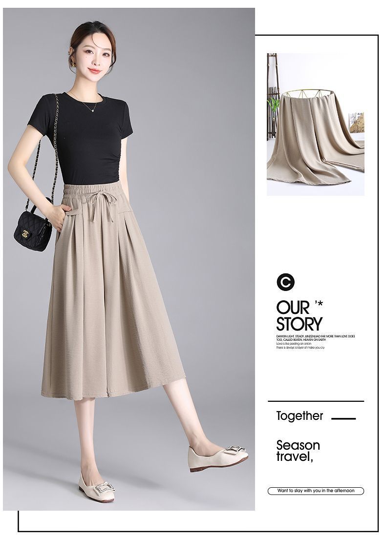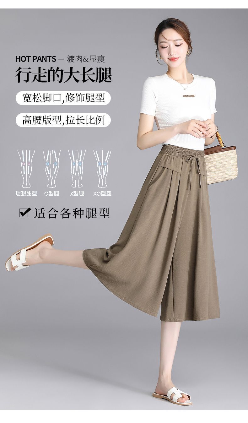 Ice Silk Wide Leg Cropped Pants Women s 2024 Summer New High Waist Dummy Korean Style Casual Pants Loose Thin Culottes for Women